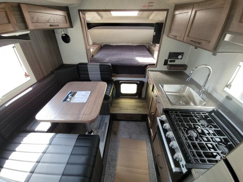 Enjoy a home on top of your long bed truck with this truck camper! Start each morning feeling recharged after sleeping on the front queen bed while your electronics recharge at the 12V USB charging stations. Fill your bellies with fried bacon and eggs cooked on the three burner stove with oven and drink a cold glass of orange juice stored in the 6.3 cu. ft. two way refrigerator. Plus, you can eat your meals at the face-to-face dinette and transform into an extra sleeping space. You can even freshen up each morning in the dry bath with extra room, a divider that separates the shower from the toilet, and a built-in shower seat. There is plenty of storage throughout with closets and overhead cabinets too! An optional 600AH lithium power system and optional Truma Combi furnace/hot water system can be added on this model for even more comfort and convenience!