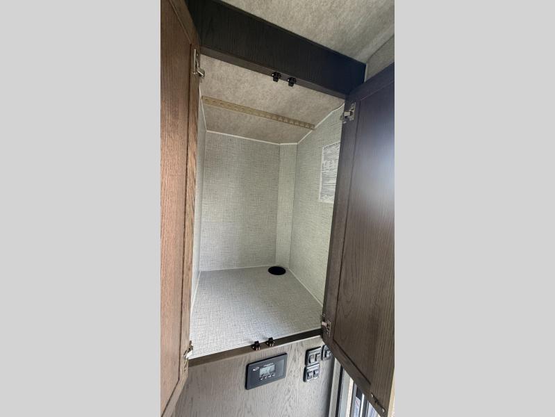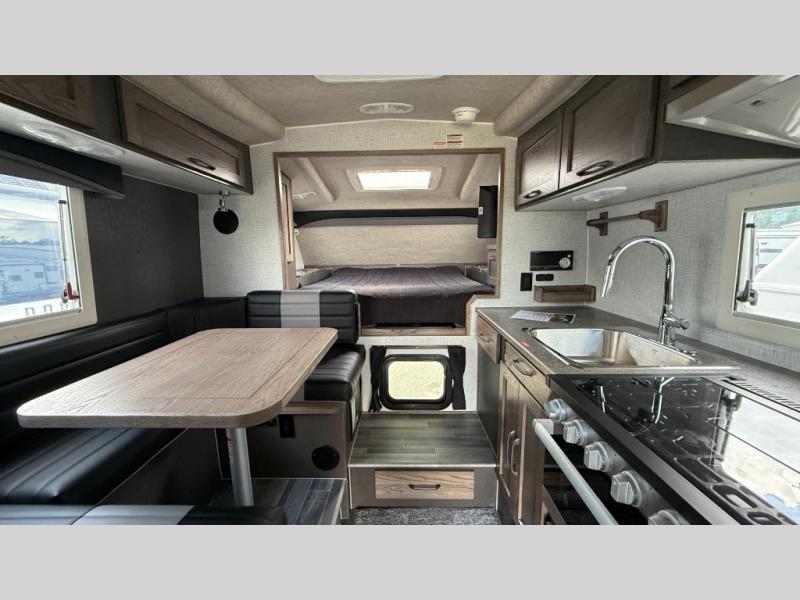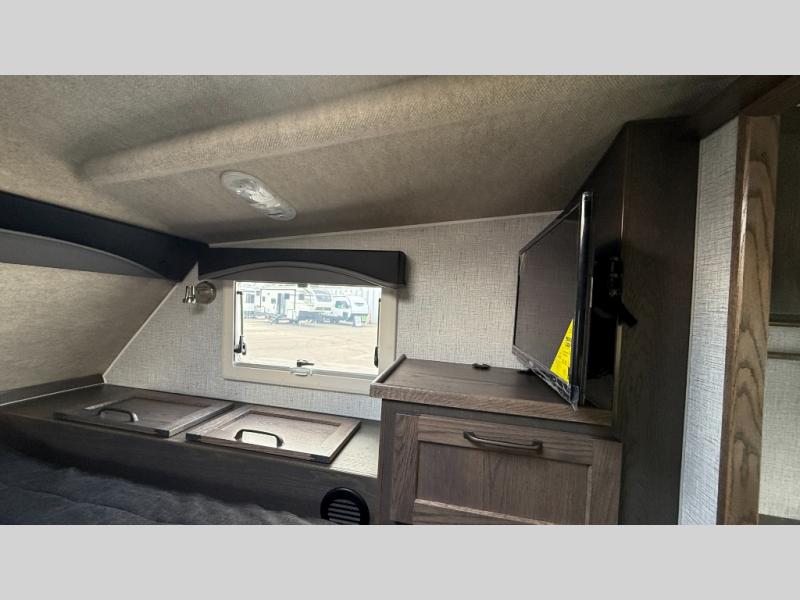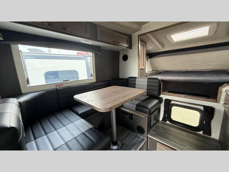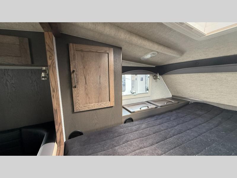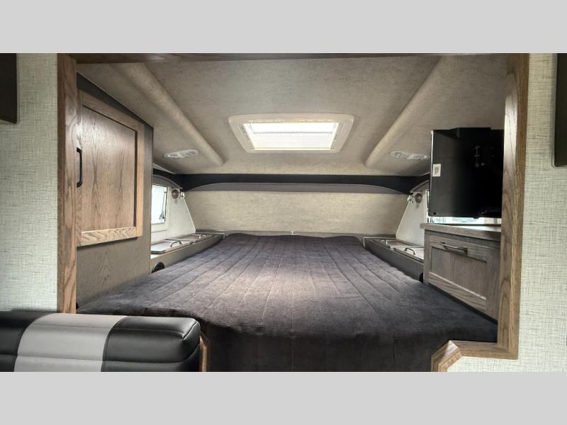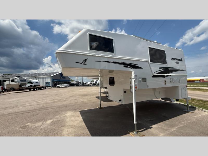 Enjoy a home on top of your long bed truck with this truck camper! Start each morning feeling recharged after sleeping on the front queen bed while your electronics recharge at the 12V USB charging stations. Fill your bellies with fried bacon and eggs cooked on the three burner stove with oven and drink a cold glass of orange juice stored in the 6.3 cu. ft. three way refrigerator. Plus, you can eat your meals at the face-to-face dinette and transform into an extra sleeping space. You can even freshen up each morning in the dry bath with extra room, a divider that separates the shower from the toilet, and a built-in shower seat. There is plenty of storage throughout with closets and overhead cabinets too!