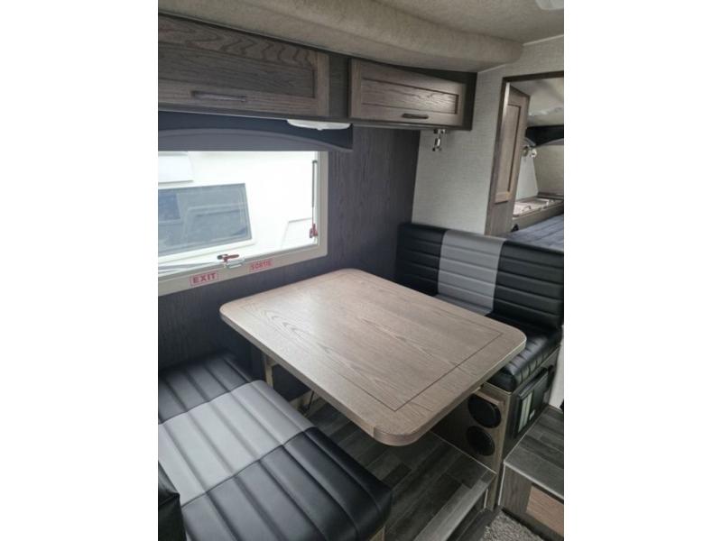 Enjoy a home on top of your long bed truck with this truck camper! Start each morning feeling recharged after sleeping on the front queen bed while your electronics recharge at the 12V USB charging stations. Fill your bellies with fried bacon and eggs cooked on the three burner stove with oven and drink a cold glass of orange juice stored in the 6.3 cu. ft. two way refrigerator. Plus, you can eat your meals at the face-to-face dinette and transform into an extra sleeping space. You can even freshen up each morning in the dry bath with extra room, a divider that separates the shower from the toilet, and a built-in shower seat. There is plenty of storage throughout with closets and overhead cabinets too! An optional 600AH lithium power system and optional Truma Combi furnace/hot water system can be added on this model for even more comfort and convenience!