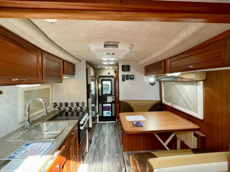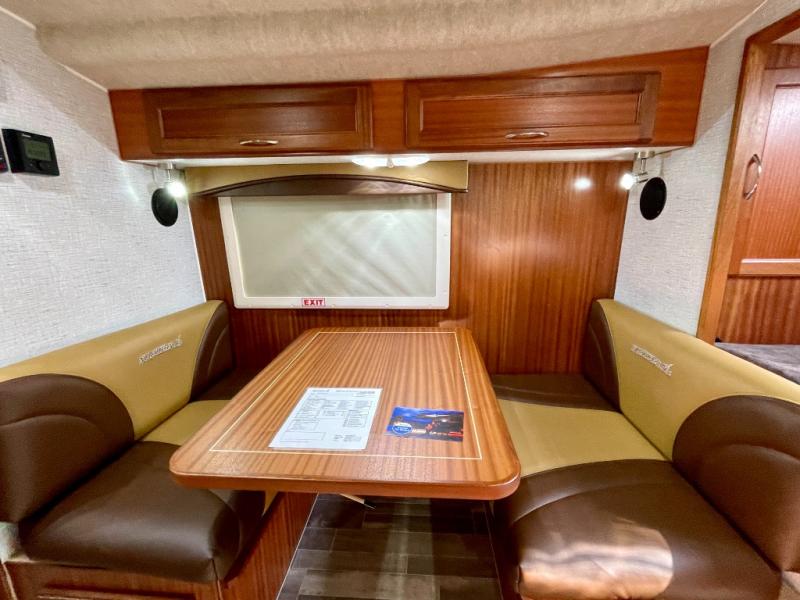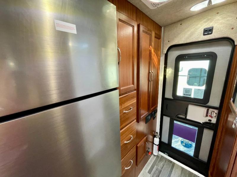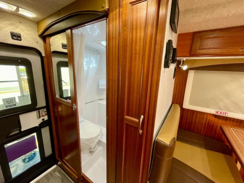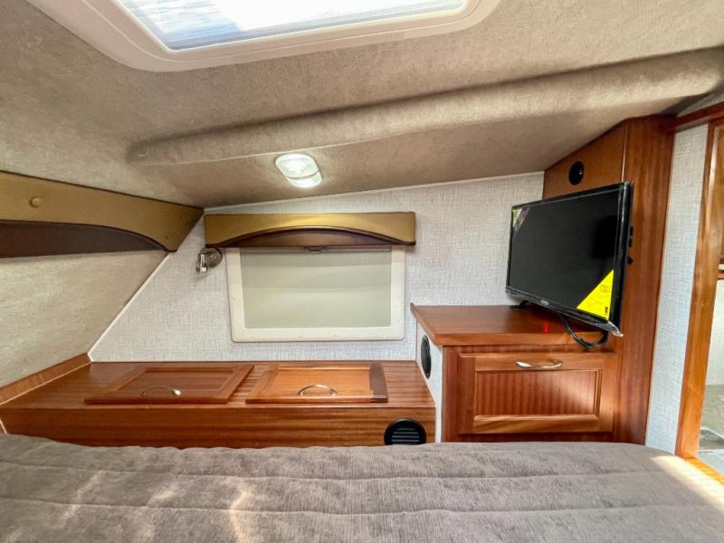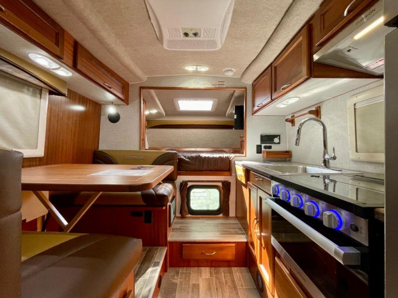 Enjoy a home on top of your long bed truck with this truck camper! Start each morning feeling recharged after sleeping on the front queen bed while your electronics recharge at the 12V USB charging stations. Fill your bellies with fried bacon and eggs cooked on the three burner stove with oven and drink a cold glass of orange juice stored in the 6.3 cu. ft. two way refrigerator. Plus, you can eat your meals at the face-to-face dinette and transform into an extra sleeping space. You can even freshen up each morning in the wet bath. There is plenty of storage throughout with closets and overhead cabinets too! An optional 600AH lithium power system and optional Truma Combi furnace/hot water system can be added on this model for even more comfort and convenience!