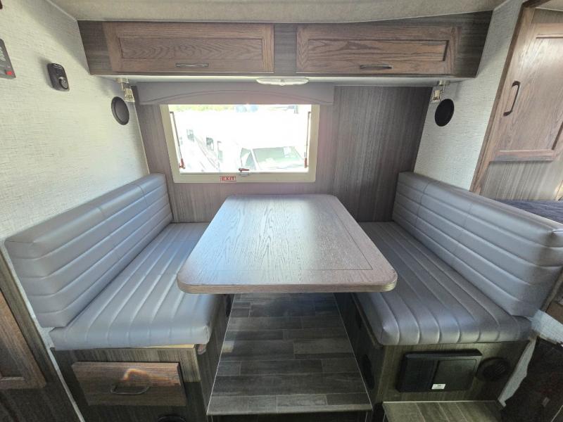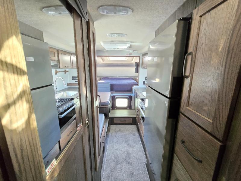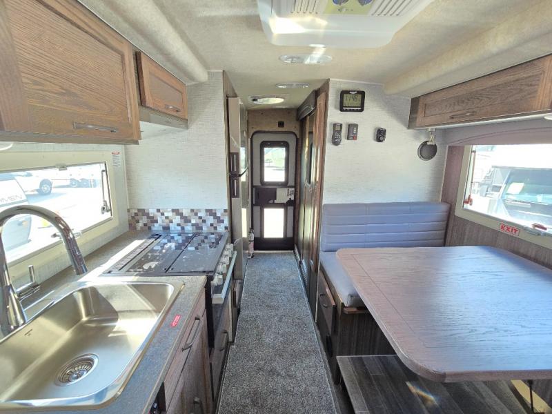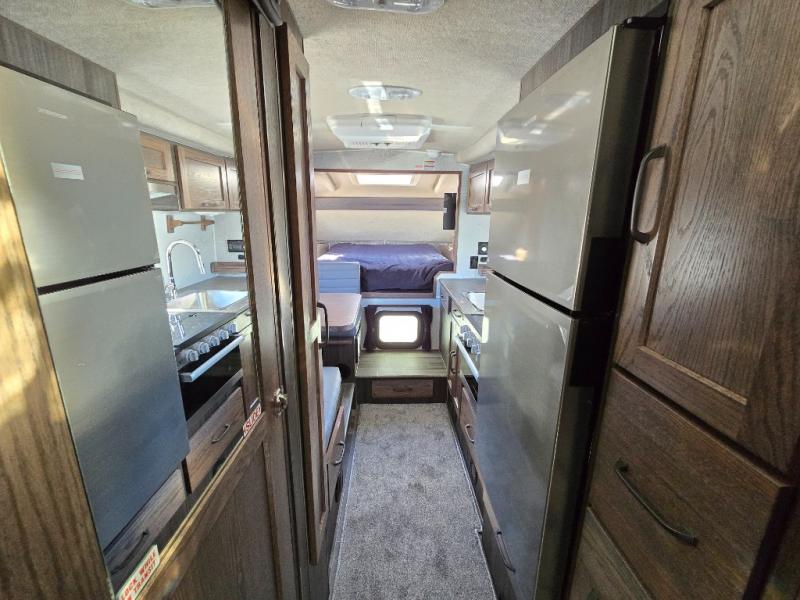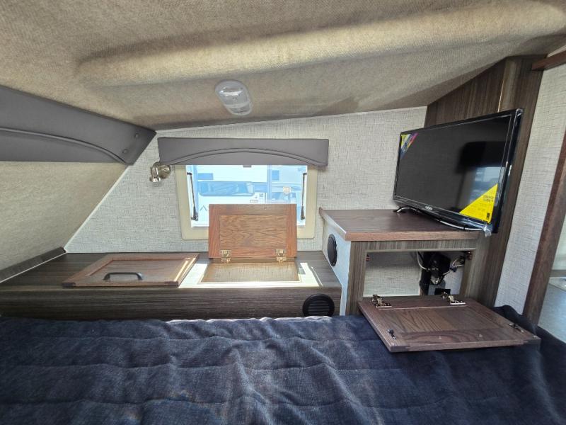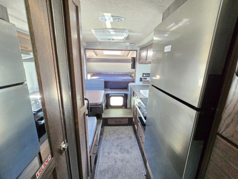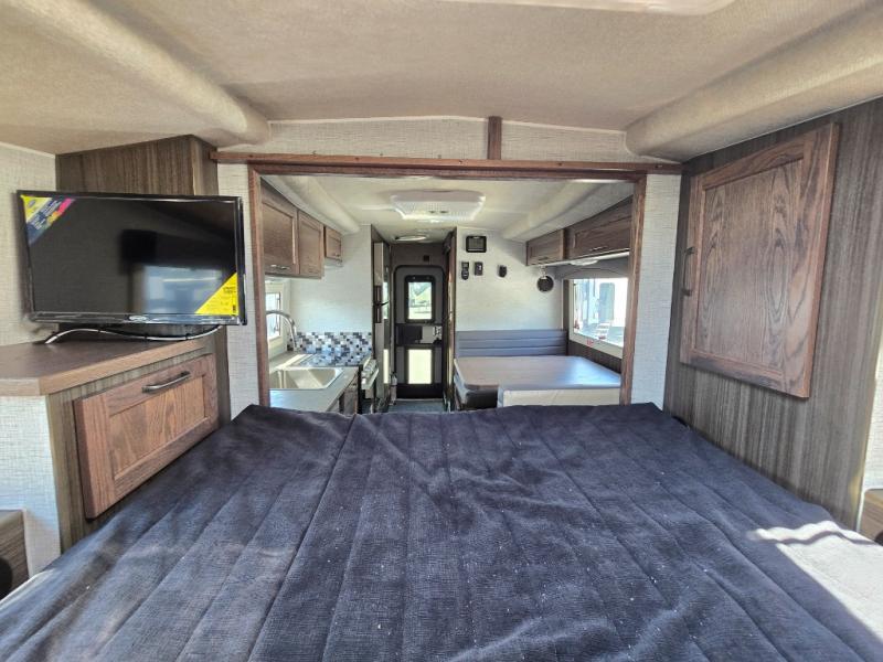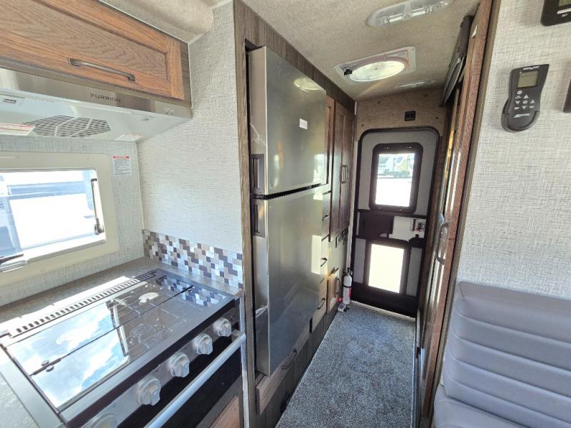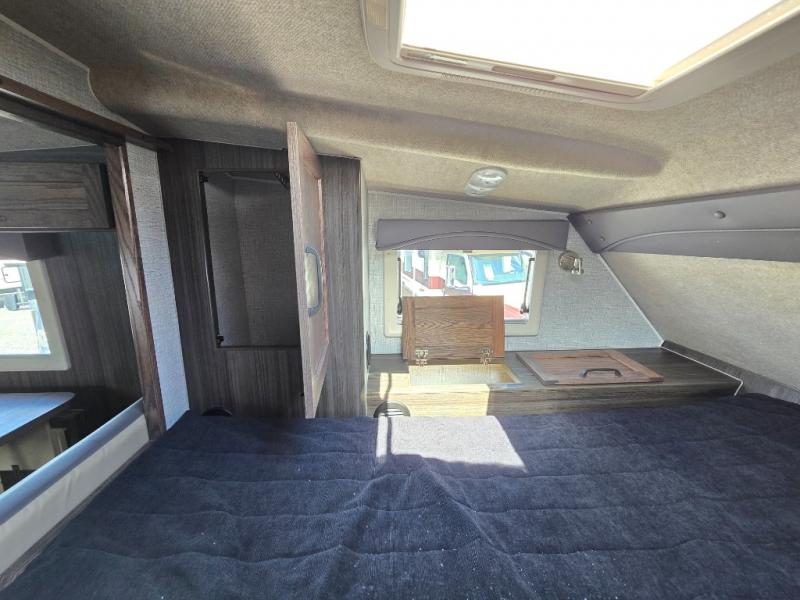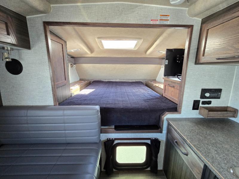 Enjoy a home on top of your long bed truck with this truck camper! Start each morning feeling recharged after sleeping on the front queen bed while your electronics recharge at the 12V USB charging stations. Fill your bellies with fried bacon and eggs cooked on the three burner stove with oven and drink a cold glass of orange juice stored in the 6.3 cu. ft. two way refrigerator. Plus, you can eat your meals at the face-to-face dinette and transform into an extra sleeping space. You can even freshen up each morning in the wet bath. There is plenty of storage throughout with closets and overhead cabinets too! An optional 600AH lithium power system and optional Truma Combi furnace/hot water system can be added on this model for even more comfort and convenience!