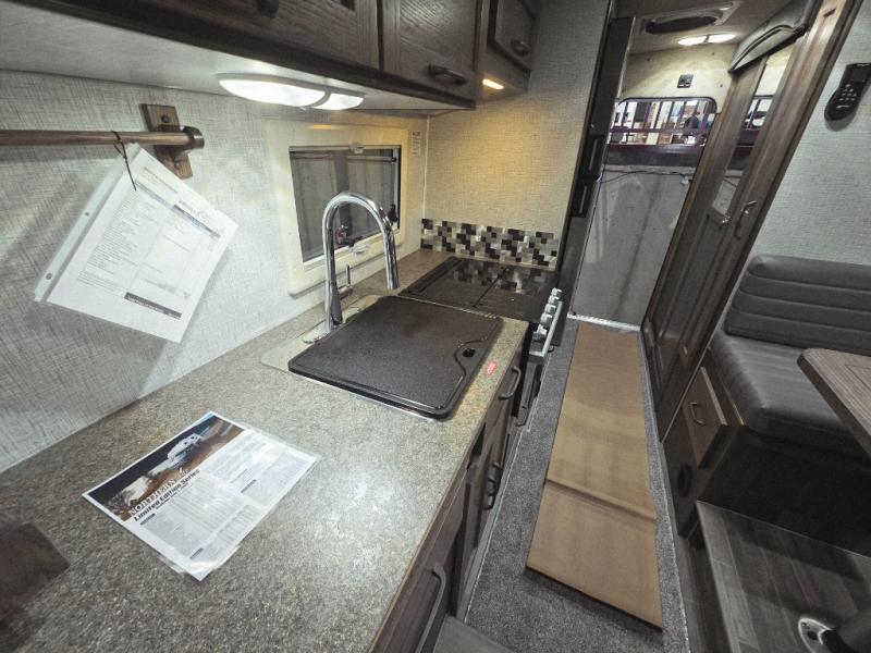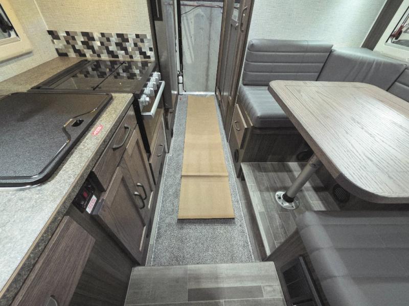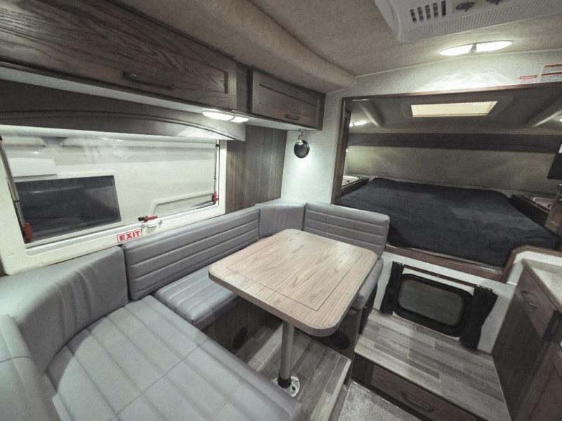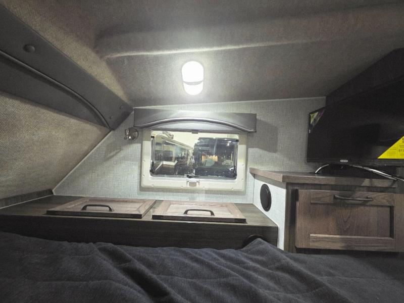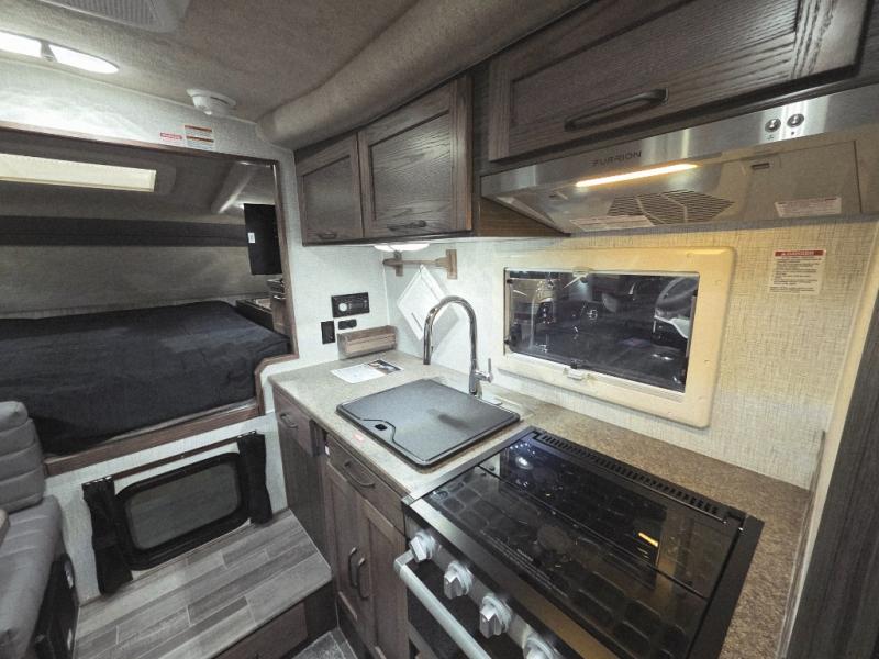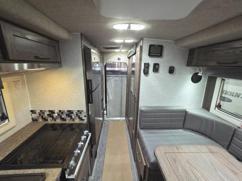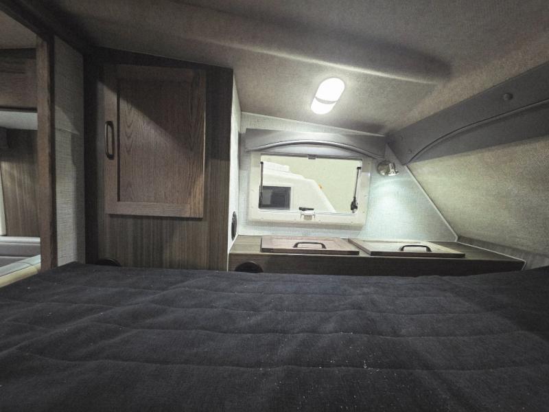 Enjoy a home on top of your long bed truck with this truck camper! Start each morning feeling recharged after sleeping on the front queen bed while your electronics recharge at the 12V USB charging stations. Fill your bellies with fried bacon and eggs cooked on the three burner stove with oven and drink a cold glass of orange juice stored in the 6.3 cu. ft. two way refrigerator. Plus, you can eat your meals at the face-to-face dinette and transform into an extra sleeping space. You can even freshen up each morning in the wet bath. There is plenty of storage throughout with closets and overhead cabinets too! An optional 600AH lithium power system and optional Truma Combi furnace/hot water system can be added on this model for even more comfort and convenience!