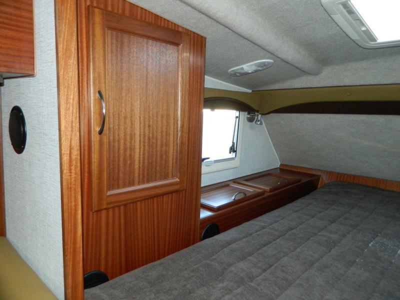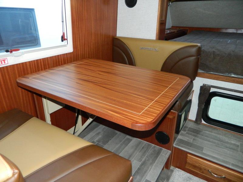 Enjoy a home on top of your long bed truck with this truck camper! Start each morning feeling recharged after sleeping on the front queen bed while your electronics recharge at the 12V USB charging stations. Fill your bellies with fried bacon and eggs cooked on the three burner stove with oven and drink a cold glass of orange juice stored in the 6.3 cu. ft. two way refrigerator. Plus, you can eat your meals at the face-to-face dinette and transform into an extra sleeping space. You can even freshen up each morning in the wet bath. There is plenty of storage throughout with closets and overhead cabinets too! An optional 600AH lithium power system and optional Truma Combi furnace/hot water system can be added on this model for even more comfort and convenience!