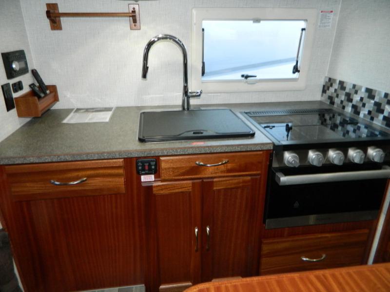 Ultimate features and a high quality construction is what you will find in any one of these Northern Lite Limited Edition truck campers! The raised chrome graphics will turn heads on the highway. The Sapele hardwood interior and premium leatherette seating will have you feeling right at home whether you are going on a fishing trip or full time RV living. A power side awning will protect you rain or shine and you can crank up the tunes with the outside speakers. With a four seasons package, you can camp any time of year and with three 200 watt solar panels you can even go off-grid camping. Don't worry about backing up with the camper either, the backup camera has you covered. Come see all of the other handy features these units offer!