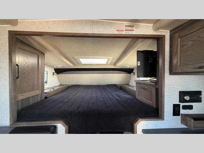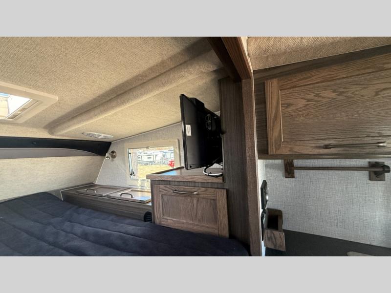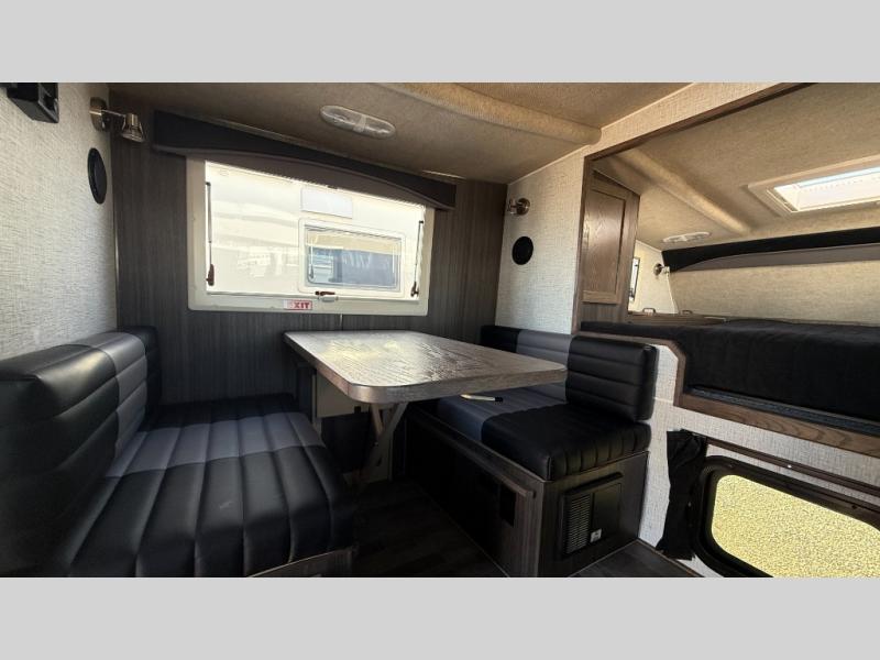 If you have a short bed truck then you need this truck camper for your next adventure! Start each morning feeling recharged after sleeping on the front queen bed while your electronics recharge at the 12V USB charging stations. Fill your bellies with fried bacon and eggs cooked on the three burner stove with oven and drink a cold glass of orange juice stored in the 6.3 cu. ft. three way refrigerator. Plus, you can eat your meals at the face-to-face dinette and transform into an extra sleeping space. You can even freshen up each morning in the drybath. There is plenty of storage throughout with closets and overhead cabinets too!