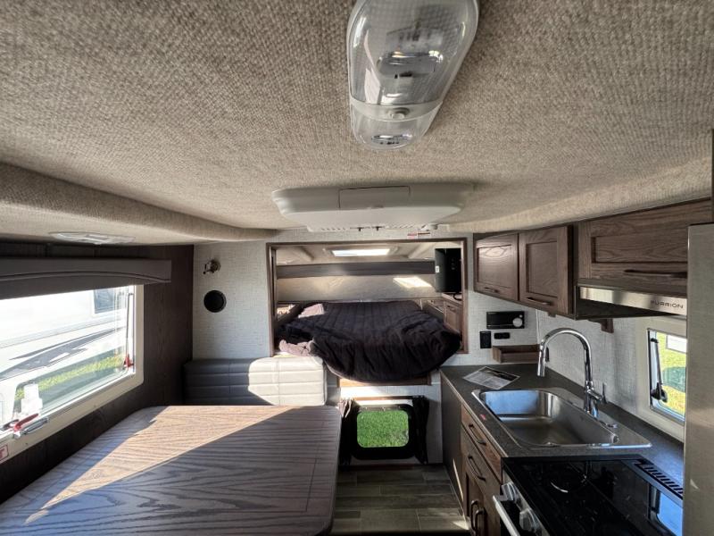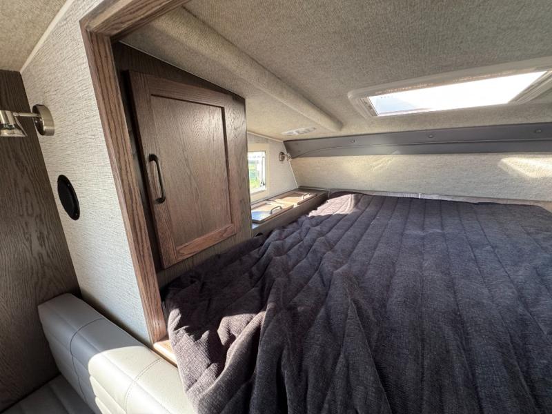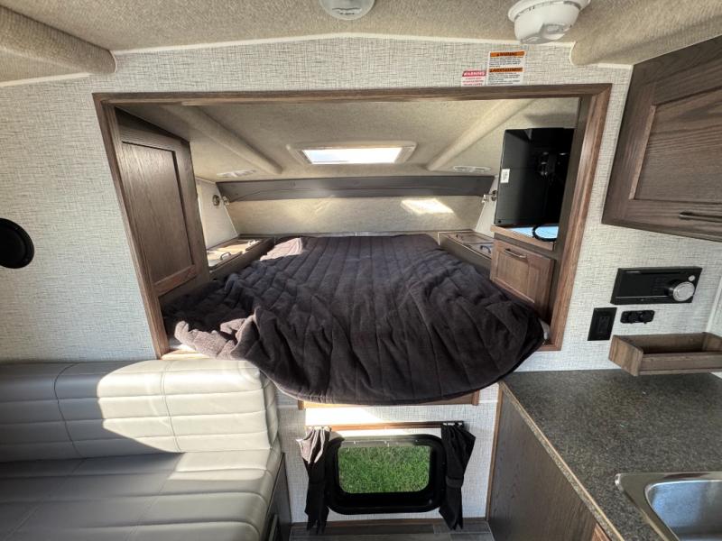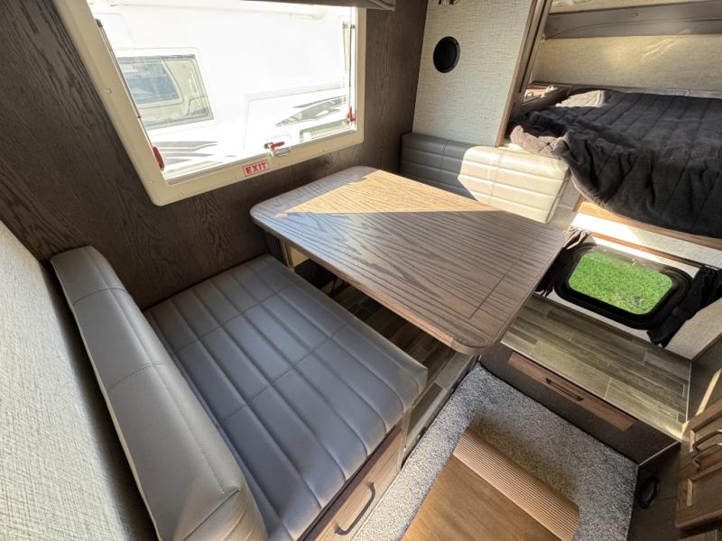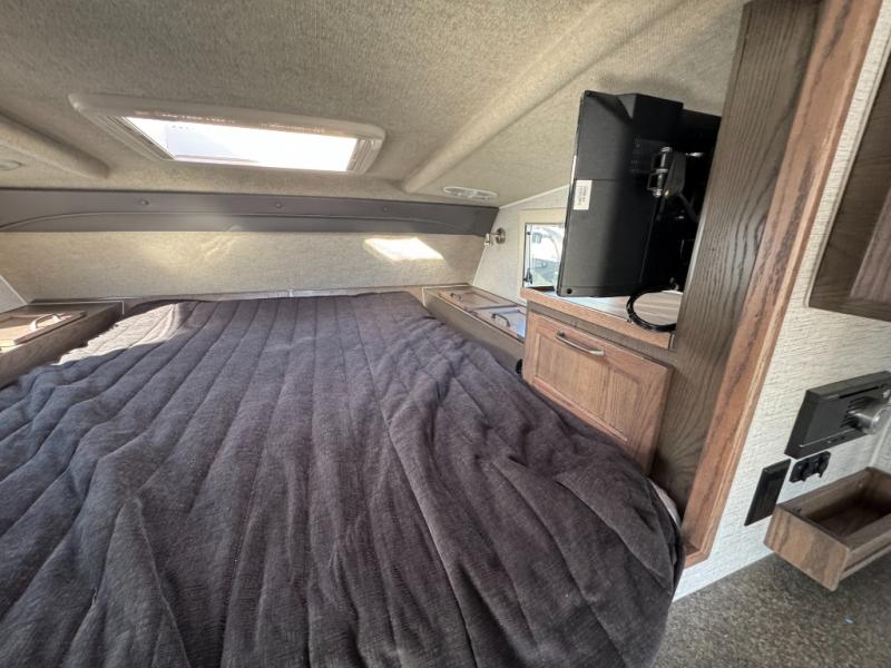 If you have a short bed truck then you need this truck camper for your next adventure! Start each morning feeling recharged after sleeping on the front queen bed while your electronics recharge at the 12V USB charging stations. Fill your bellies with fried bacon and eggs cooked on the three burner stove with oven and drink a cold glass of orange juice stored in the 6.3 cu. ft. three way refrigerator. Plus, you can eat your meals at the face-to-face dinette and transform into an extra sleeping space. You can even freshen up each morning in the wet bath. There is plenty of storage throughout with closets and overhead cabinets too!