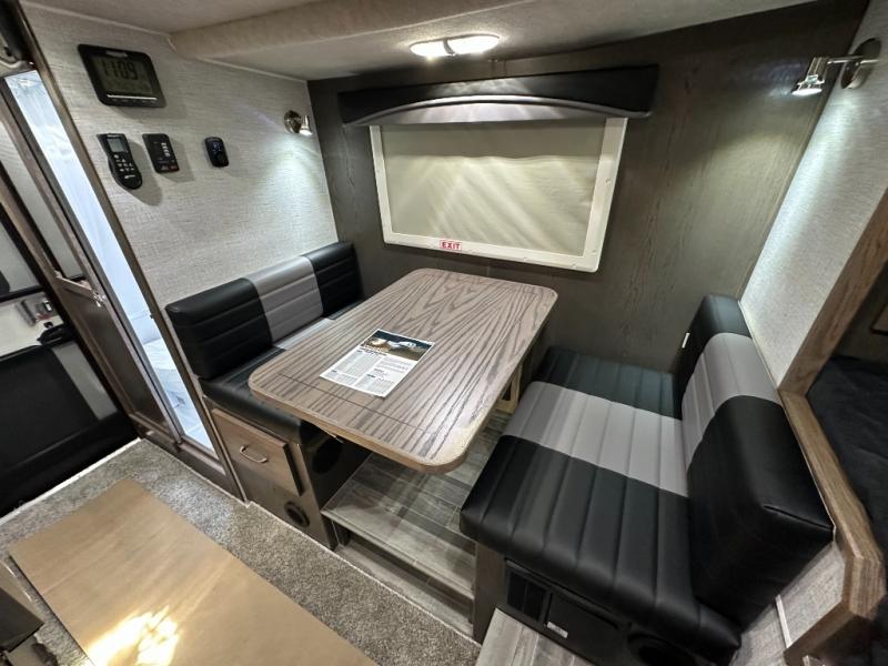 If you have a short bed truck then you need this truck camper for your next adventure! Start each morning feeling recharged after sleeping on the front queen bed while your electronics recharge at the 12V USB charging stations. Fill your bellies with fried bacon and eggs cooked on the three burner stove with oven and drink a cold glass of orange juice stored in the 6.3 cu. ft. three way refrigerator. Plus, you can eat your meals at the face-to-face dinette and transform into an extra sleeping space. You can even freshen up each morning in the wet bath. There is plenty of storage throughout with closets and overhead cabinets too!