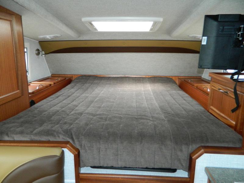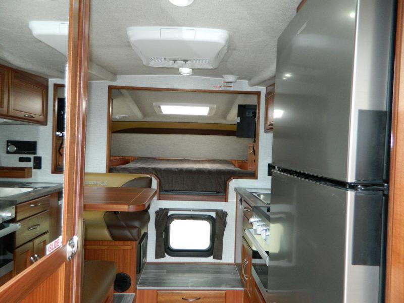 If you have a short bed truck then you need this truck camper for your next adventure! Start each morning feeling recharged after sleeping on the front queen bed while your electronics recharge at the 12V USB charging stations. Fill your bellies with fried bacon and eggs cooked on the three burner stove with oven and drink a cold glass of orange juice stored in the 6.3 cu. ft. two way refrigerator. Plus, you can eat your meals at the face-to-face dinette and transform into an extra sleeping space. You can even freshen up each morning in the wet bath. There is plenty of storage throughout with closets and overhead cabinets too! An optional 600AH lithium power system and optional Truma Combi furnace/hot water system can be added on this model for even more comfort and convenience!