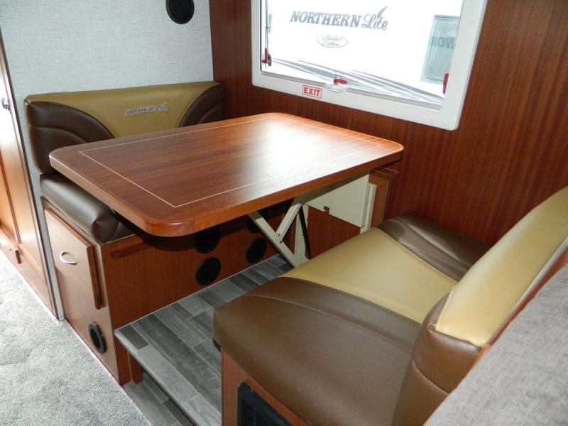Ultimate features and a high quality construction is what you will find in any one of these Northern Lite Limited Edition truck campers! The raised chrome graphics will turn heads on the highway. The Sapele hardwood interior and premium leatherette seating will have you feeling right at home whether you are going on a fishing trip or full time RV living. A power side awning will protect you rain or shine and you can crank up the tunes with the outside speakers. With a four seasons package, you can camp any time of year and with three 200 watt solar panels you can even go off-grid camping. Don't worry about backing up with the camper either, the backup camera has you covered. Come see all of the other handy features these units offer!