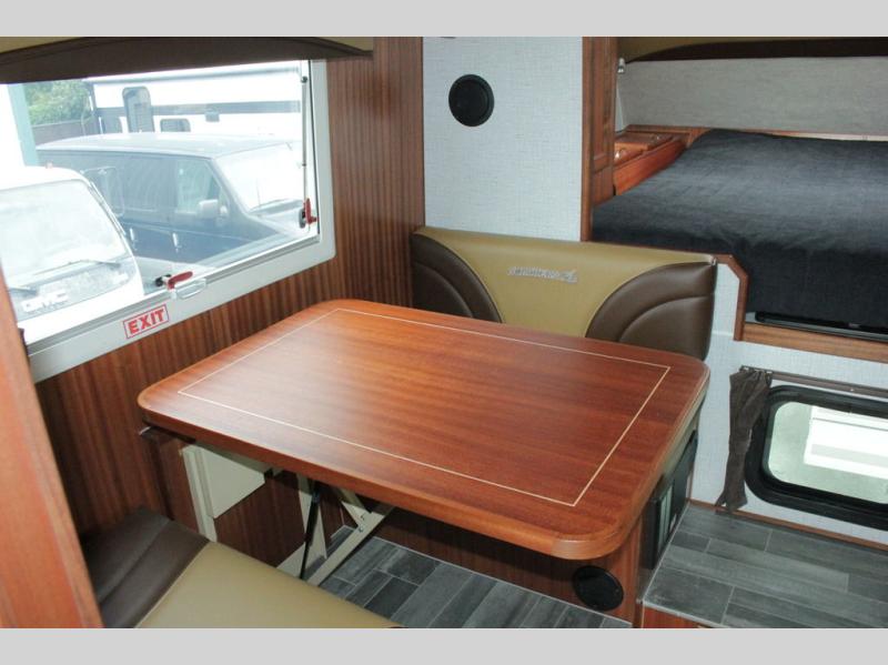 If you have a short bed truck then you need this truck camper for your next adventure! Start each morning feeling recharged after sleeping on the front queen bed while your electronics recharge at the 12V USB charging stations. Fill your bellies with fried bacon and eggs cooked on the three burner stove with oven and drink a cold glass of orange juice stored in the 6.3 cu. ft. two way refrigerator. Plus, you can eat your meals at the face-to-face dinette and transform into an extra sleeping space. You can even freshen up each morning in the wet bath. There is plenty of storage throughout with closets and overhead cabinets too! An optional 600AH lithium power system and optional Truma Combi furnace/hot water system can be added on this model for even more comfort and convenience!