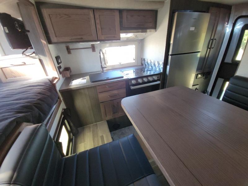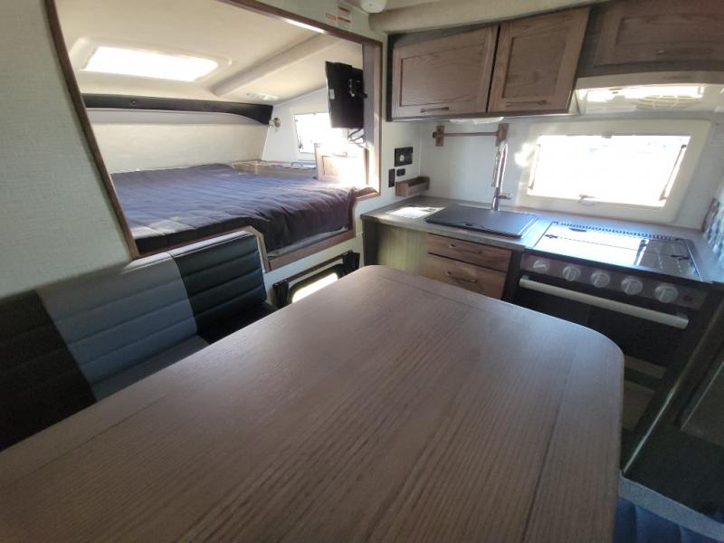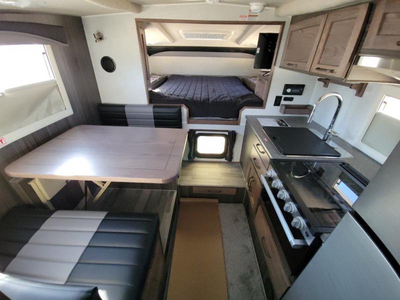 If you have a short bed truck then you need this truck camper for your next adventure! Start each morning feeling recharged after sleeping on the front queen bed while your electronics recharge at the 12V USB charging stations. Fill your bellies with fried bacon and eggs cooked on the three burner stove with oven and drink a cold glass of orange juice stored in the 6.3 cu. ft. two way refrigerator. Plus, you can eat your meals at the face-to-face dinette and transform into an extra sleeping space. You can even freshen up each morning in the wet bath. There is plenty of storage throughout with closets and overhead cabinets too! An optional 600AH lithium power system and optional Truma Combi furnace/hot water system can be added on this model for even more comfort and convenience!