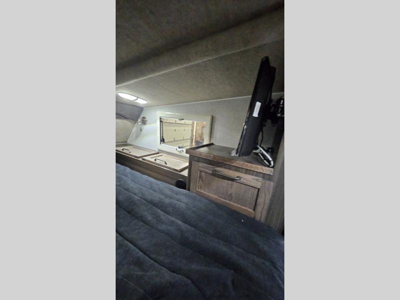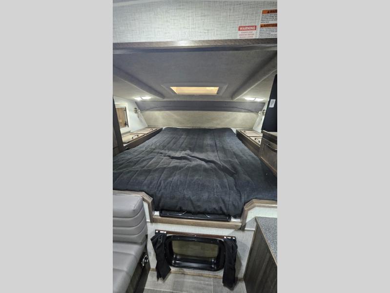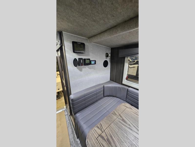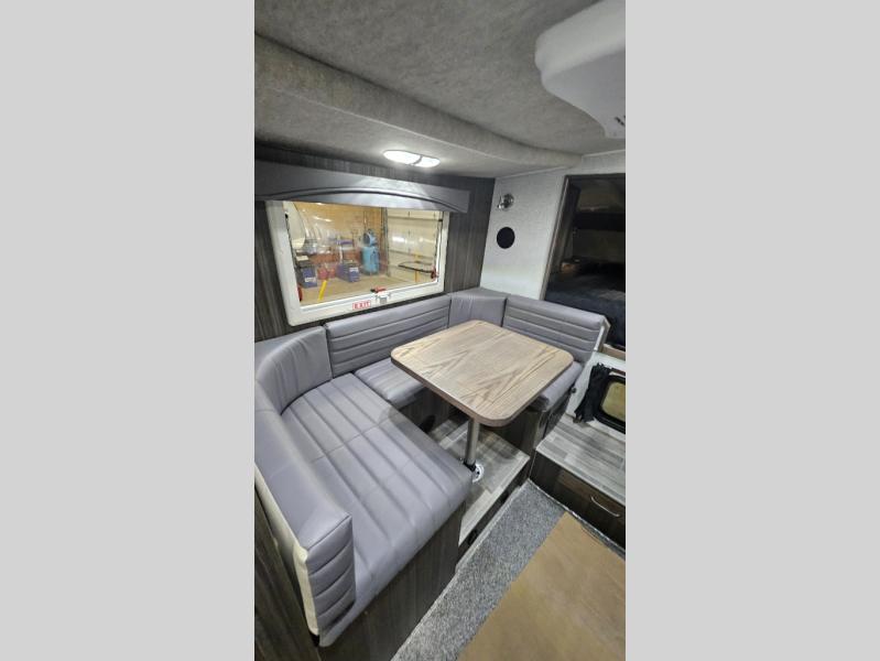 If you have a short bed truck then you need this truck camper for your next adventure! Start each morning feeling recharged after sleeping on the front queen bed while your electronics recharge at the 12V USB charging stations. Fill your bellies with fried bacon and eggs cooked on the three burner stove with oven and drink a cold glass of orange juice stored in the 8 cu. ft. 12 Volt refrigerator. Plus, you can eat your meals at the U shaped dinette and transform into an extra sleeping space. You can even freshen up each morning in the wet bath. There is plenty of storage throughout with closets and overhead cabinets too! An optional 600AH lithium power system and optional Truma Combi furnace/hot water system can be added on this model for even more comfort and convenience!