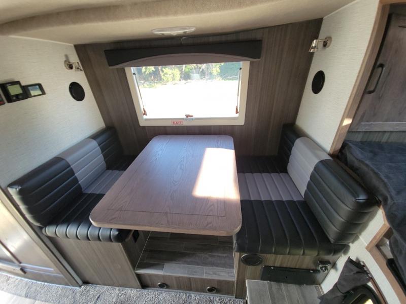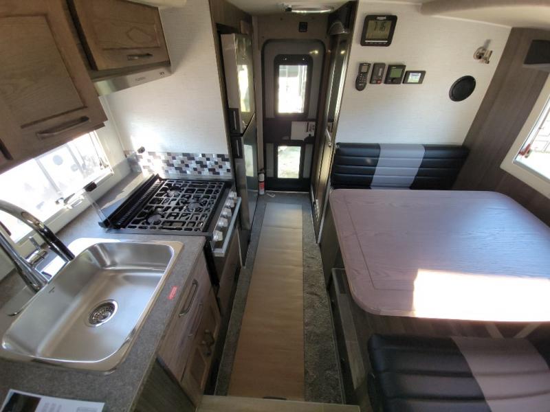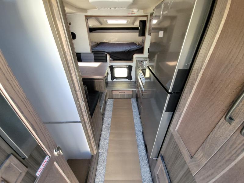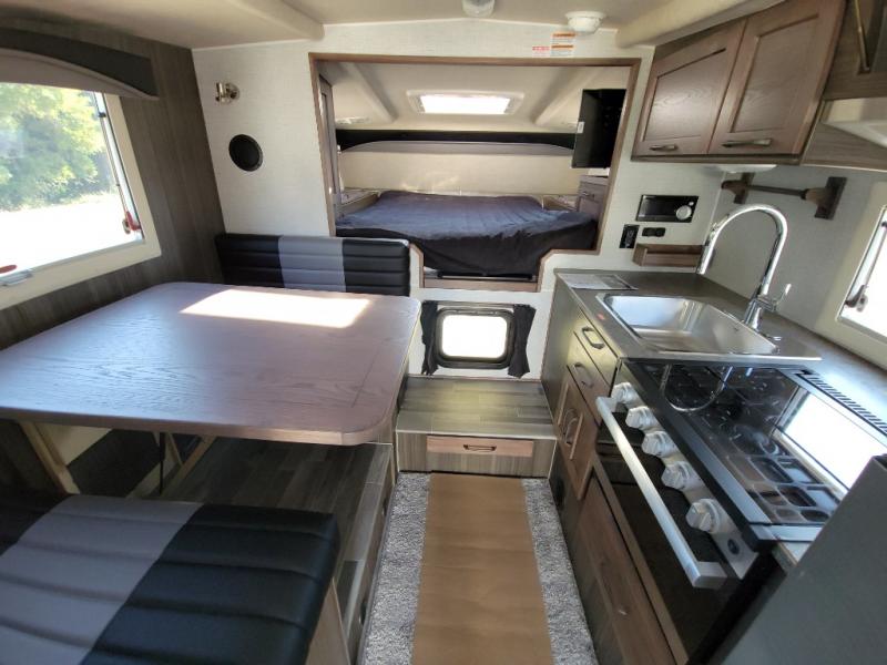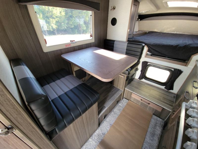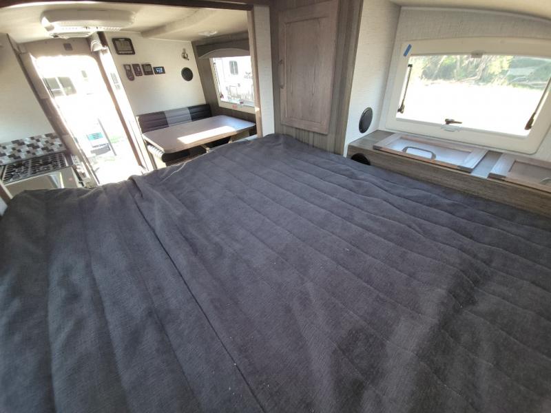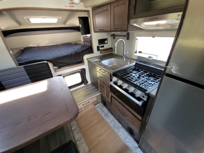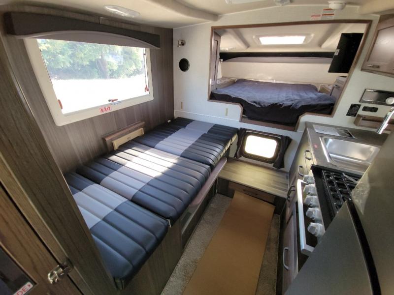 This truck camper is perfect for your long bed truck! Start each morning feeling recharged after sleeping on the front queen bed while your electronics recharge at the 12V USB charging stations. Fill your bellies with fried bacon and eggs cooked on the three burner stove with oven and drink a cold glass of orange juice stored in the 6.3 cu. ft. two way refrigerator. Plus, you can eat your meals at the face-to-face dinette and transform into an extra sleeping space. You can even freshen up each morning in the wet bath. An optional 600AH lithium power system and optional Truma Combi furnace/hot water system can be added on this model for even more comfort and convenience!