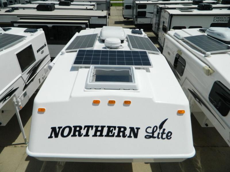 Ultimate features and a high quality construction is what you will find in any one of these Northern Lite Limited Edition truck campers! The raised chrome graphics will turn heads on the highway. The Sapele hardwood interior and premium leatherette seating will have you feeling right at home whether you are going on a fishing trip or full time RV living. A power side awning will protect you rain or shine and you can crank up the tunes with the outside speakers. With a four seasons package, you can camp any time of year and with three 200 watt solar panels you can even go off-grid camping. Don't worry about backing up with the camper either, the backup camera has you covered. Come see all of the other handy features these units offer!