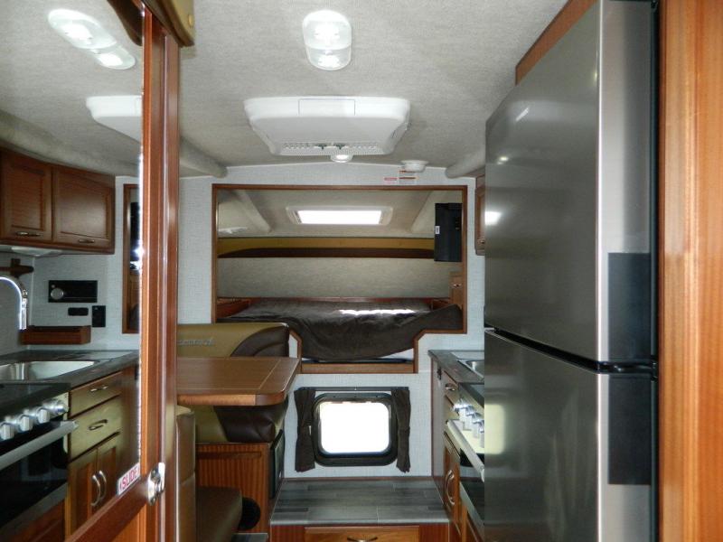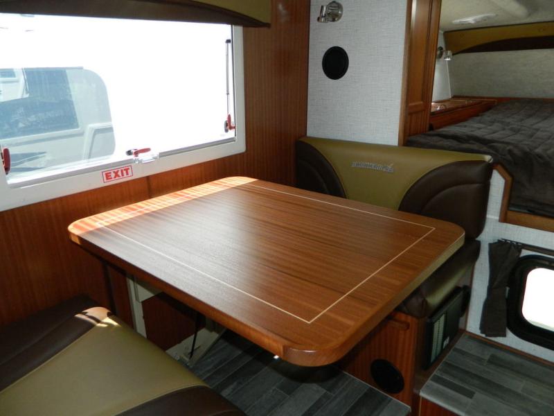 This truck camper is perfect for your long bed truck! Start each morning feeling recharged after sleeping on the front queen bed while your electronics recharge at the 12V USB charging stations. Fill your bellies with fried bacon and eggs cooked on the three burner stove with oven and drink a cold glass of orange juice stored in the 6.3 cu. ft. two way refrigerator. Plus, you can eat your meals at the face-to-face dinette and transform into an extra sleeping space. You can even freshen up each morning in the wet bath. An optional 600AH lithium power system and optional Truma Combi furnace/hot water system can be added on this model for even more comfort and convenience!