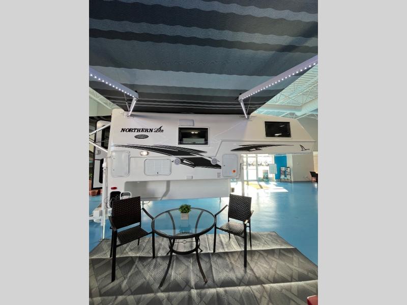 Ultimate features and a high quality construction is what you will find in any one of these Northern Lite Limited Edition truck campers! The raised chrome graphics will turn heads on the highway. The Sapele hardwood interior and premium leatherette seating will have you feeling right at home whether you are going on a fishing trip or full time RV living. A power side awning will protect you rain or shine and you can crank up the tunes with the outside speakers. With a four seasons package, you can camp any time of year and with three 200 watt solar panels you can even go off-grid camping. Don't worry about backing up with the camper either, the backup camera has you covered. Come see all of the other handy features these units offer!