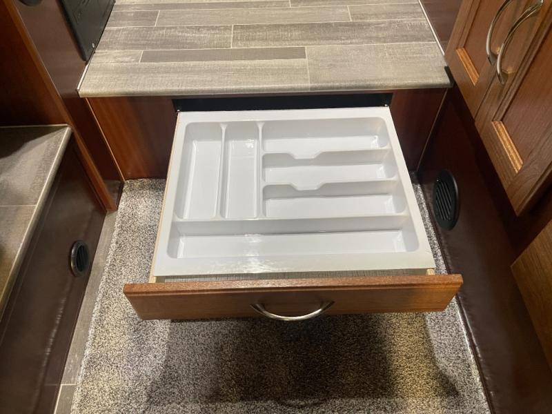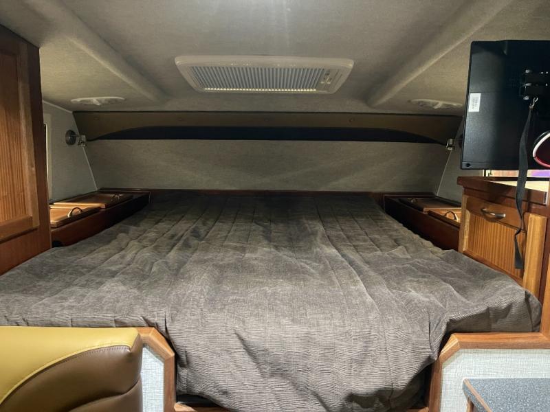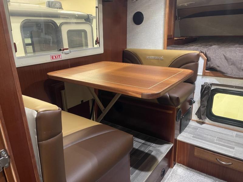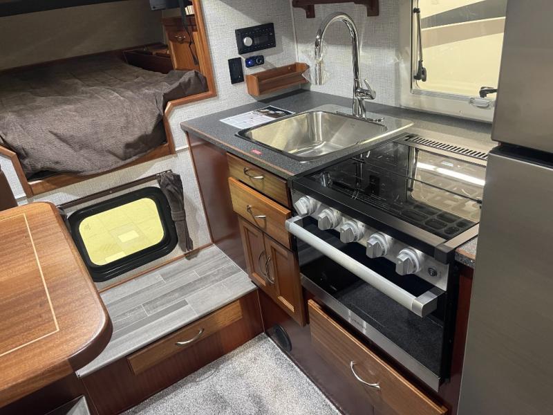 This truck camper is perfect for your long bed truck! Start each morning feeling recharged after sleeping on the front queen bed while your electronics recharge at the 12V USB charging stations. Fill your bellies with fried bacon and eggs cooked on the three burner stove with oven and drink a cold glass of orange juice stored in the 6.3 cu. ft. two way refrigerator. Plus, you can eat your meals at the face-to-face dinette and transform into an extra sleeping space. You can even freshen up each morning in the wet bath. An optional 600AH lithium power system and optional Truma Combi furnace/hot water system can be added on this model for even more comfort and convenience!