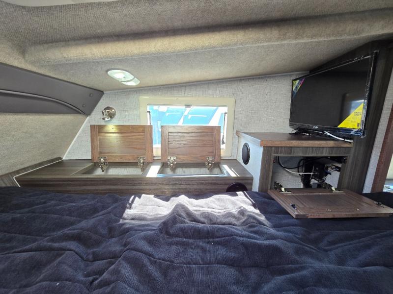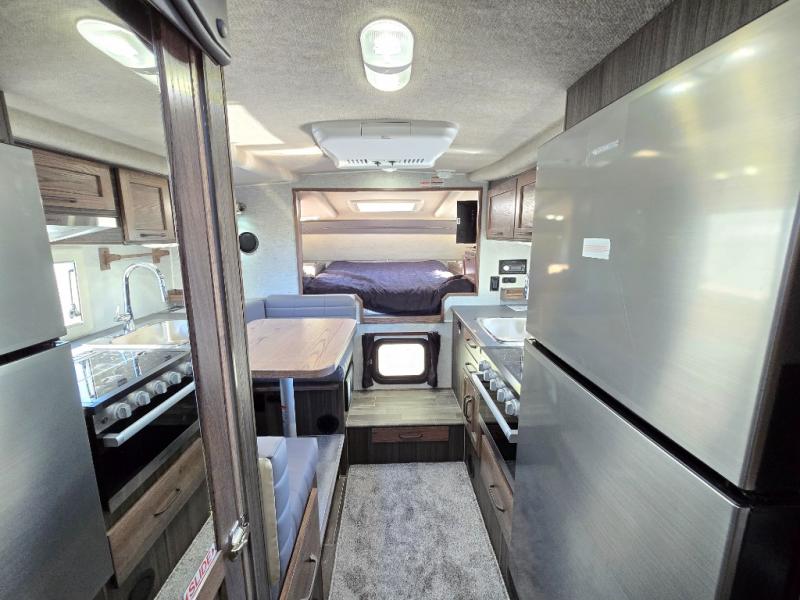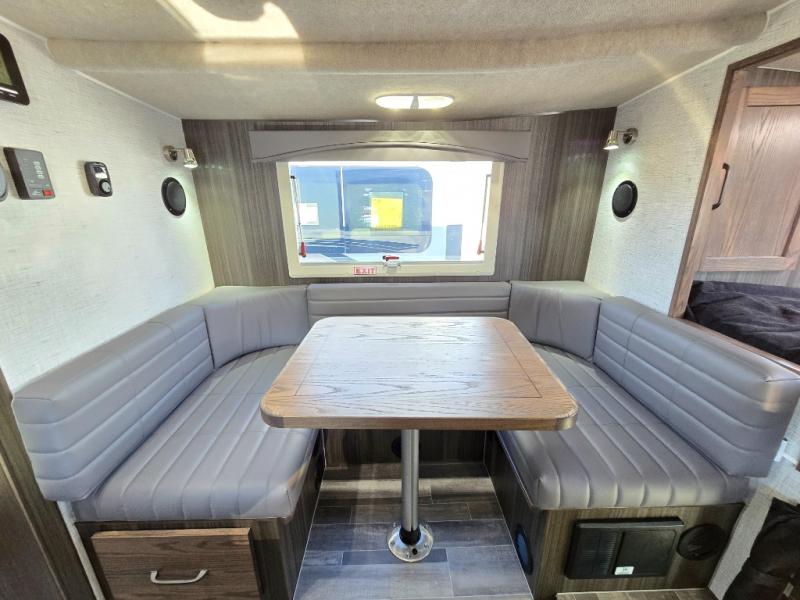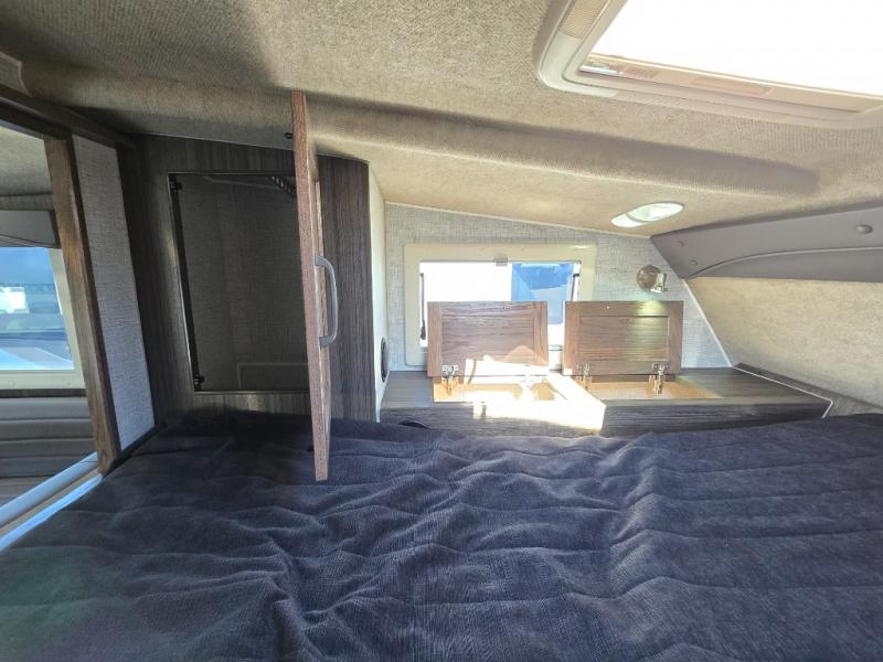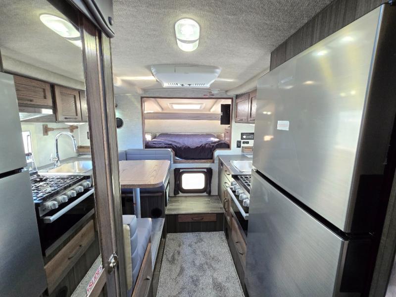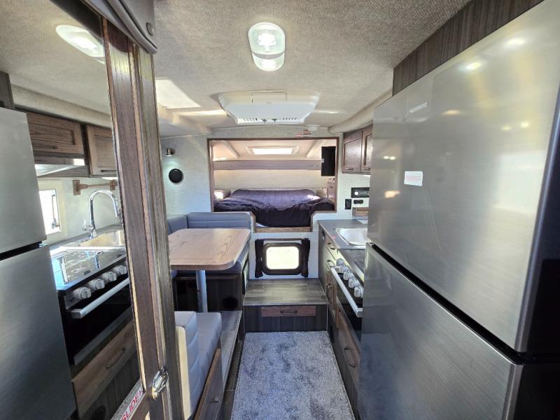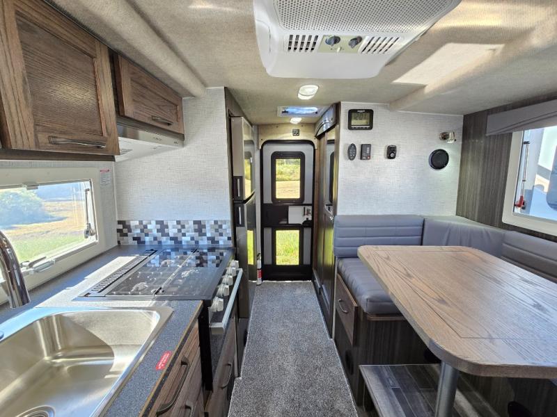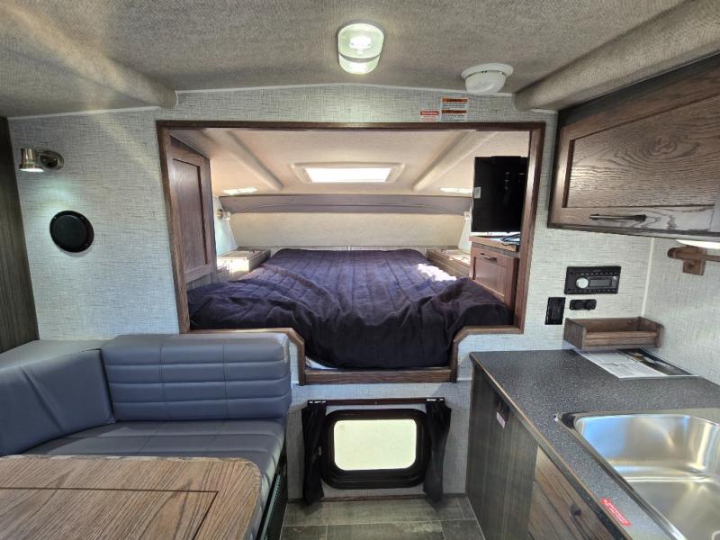 This truck camper is perfect for your long bed truck! Start each morning feeling recharged after sleeping on the front queen bed while your electronics recharge at the 12V USB charging stations. Fill your bellies with fried bacon and eggs cooked on the three burner stove with oven and drink a cold glass of orange juice stored in the 6.3 cu. ft. two way refrigerator. Plus, you can eat your meals at the face-to-face dinette and transform into an extra sleeping space. You can even freshen up each morning in the wet bath. An optional 600AH lithium power system and optional Truma Combi furnace/hot water system can be added on this model for even more comfort and convenience!