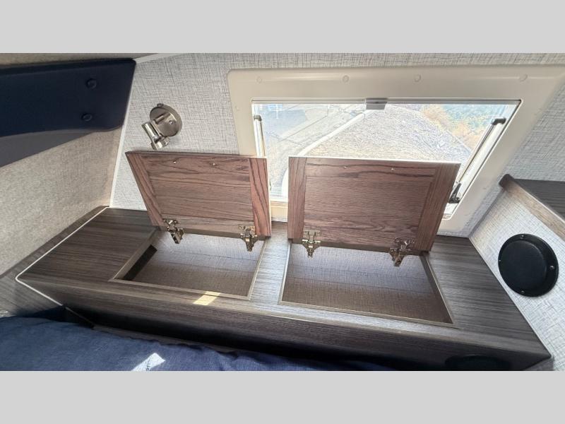 This truck camper is perfect for your long bed truck! Start each morning feeling recharged after sleeping on the front queen bed while your electronics recharge at the 12V USB charging stations. Fill your bellies with fried bacon and eggs cooked on the three burner stove with oven and drink a cold glass of orange juice stored in the 6.3 cu. ft. two way refrigerator. Plus, you can eat your meals at the face-to-face dinette and transform into an extra sleeping space. You can even freshen up each morning in the wet bath. An optional 600AH lithium power system and optional Truma Combi furnace/hot water system can be added on this model for even more comfort and convenience!