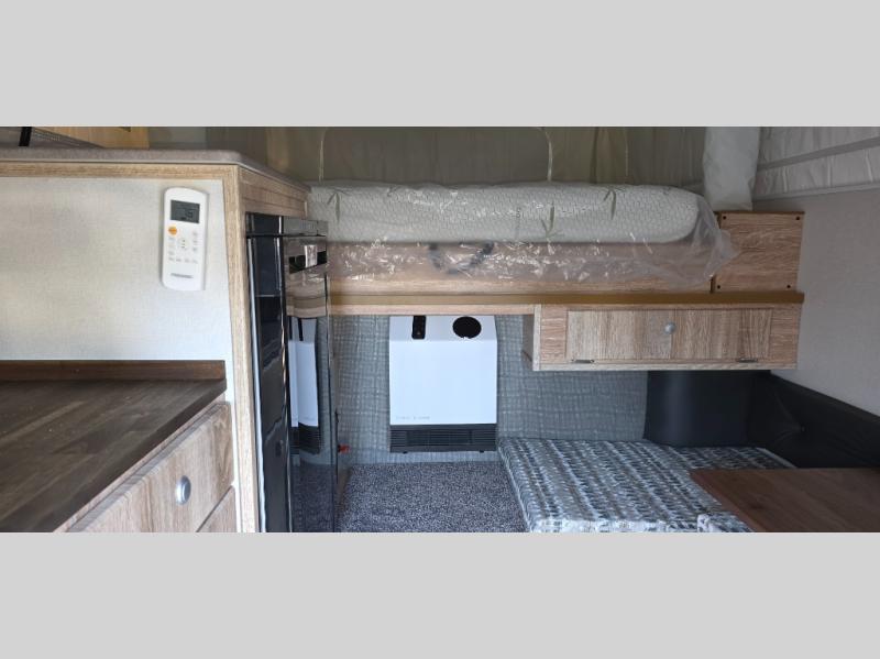 Designed to fit all of the smaller trucks such as Gladiator, Tacoma, Ranger, Frontier, Colorado and Canyon. This camper will not fit full size trucks, the correct model for full size trucks would be the G-MAX 650. The Upgraded Electric System includes, but is not limited to: 3.5 CF 12v Compressor fridge, 6,000 BTU Floor AC, 2 x 200 Watt Solar panel w/ Blue Tooth Module, Electric Infrared Heater w/Digital Thermostat, Dual Induction Electric Stove, 3,000 Watt Inverter, 300 Amp Hr. Lithium Battery and Electric Roof Lift. All of the electronics in the G-Max 600 are designed to operate from the included 300 Amp Hr. Lithium Battery. An Optional 2nd Battery is available.