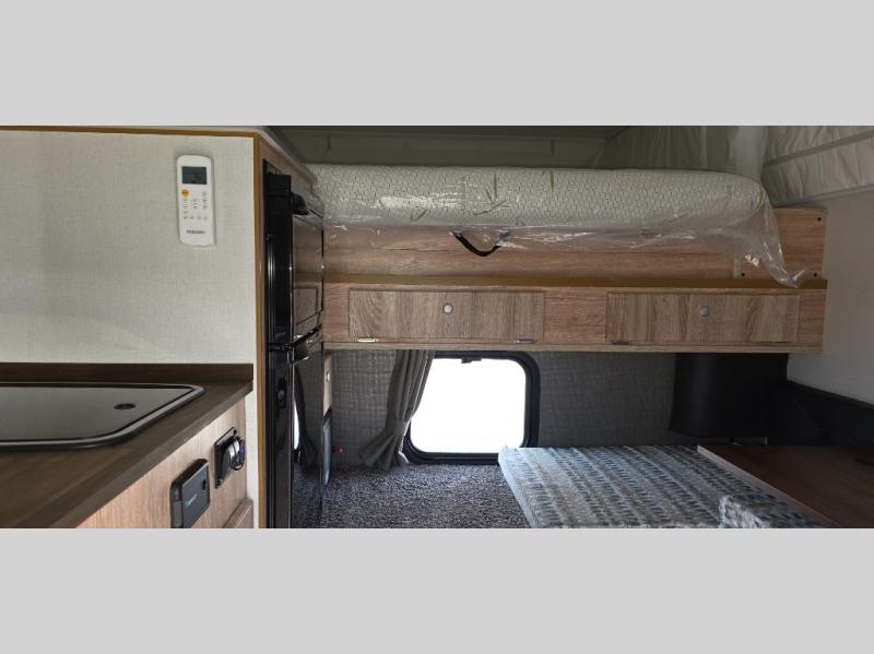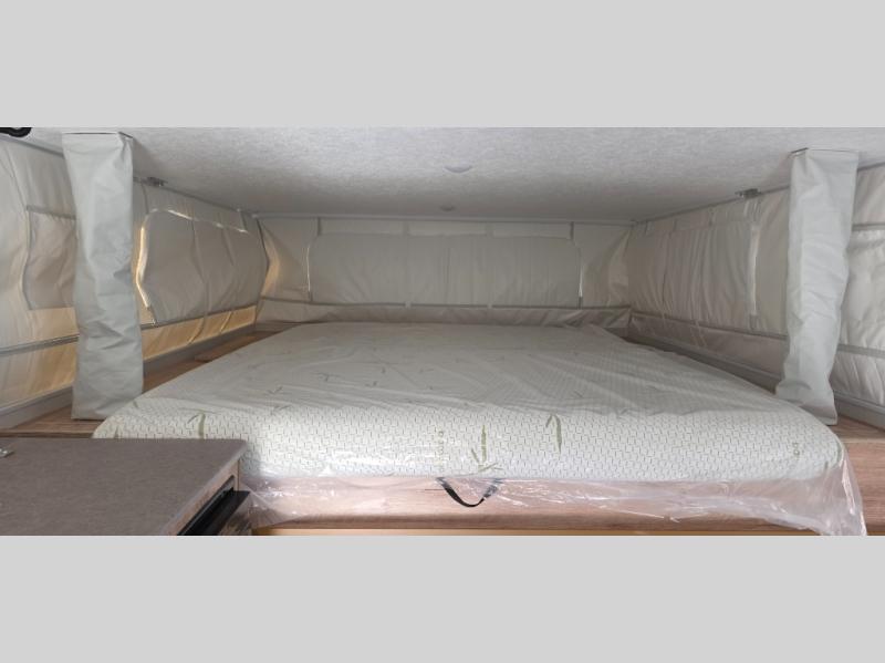 The extensive list of STD. Equipment includes, but is not limited to: 3.5 CF 12v Compressor fridge, 200 Watt Solar panel w/ Blue Tooth Module (11.10.2024), Auto ignition furnace, North/South extended cabover bed, Happijac (4220) Removable 4 Corner manual jacks, 2 Burner slide In folding glass top stove, Electric roof lift, insulated vinyl enclosure & dinette window, fiberglass exterior etc. A compact, self-contained camper for all those Ultra short bed and Standard short bed trucks out there!!