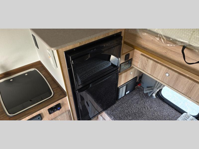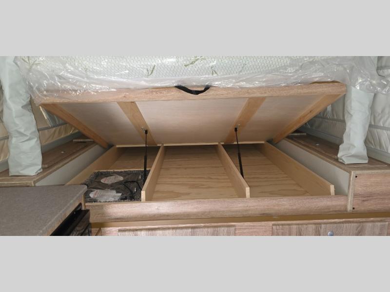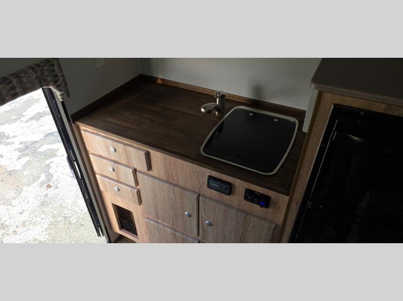 While being the same exterior dimensions (7’ Floor Length) as the previous 650SC model, this camper has been completely redesigned with a new floorplan, larger water capacity (30 gls), increased battery storage, new 2 burner slide-in folding glass top stove, new fridge and additional Std. features.
