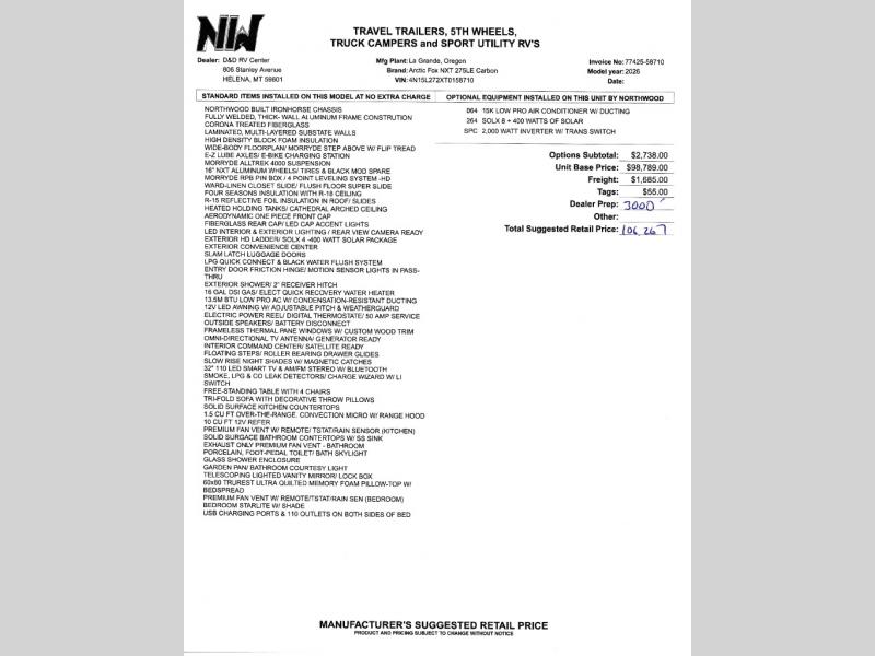 This Northwood Arctic Fox 275LE NXT includes these options:
