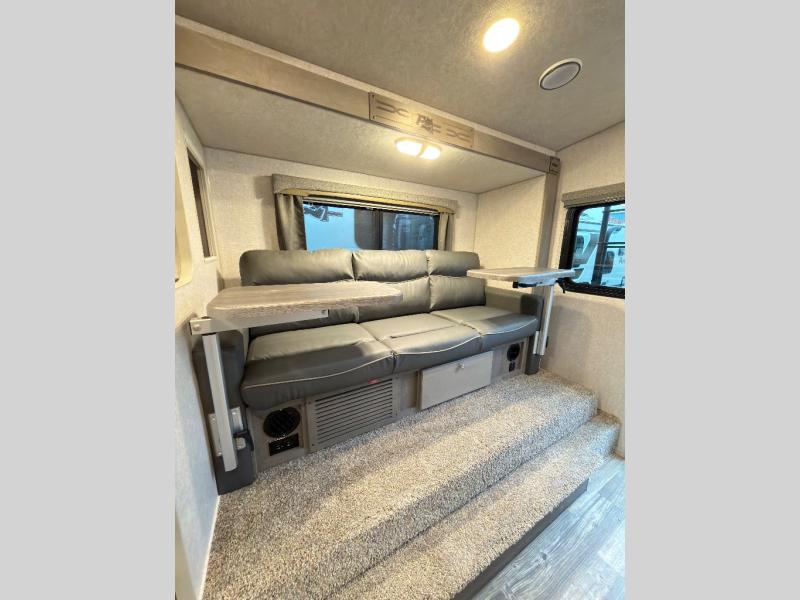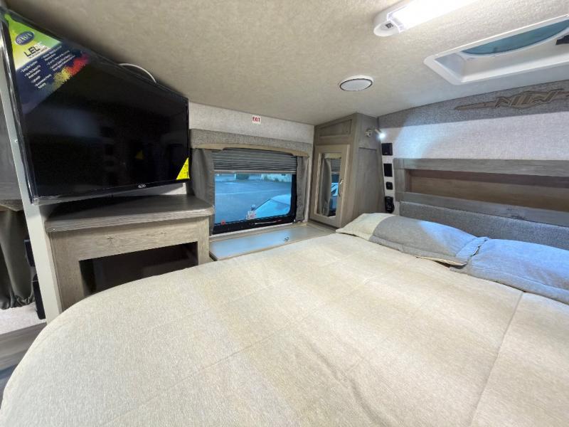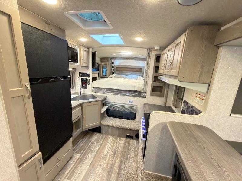 Get out and explore when you have this truck camper that allows you to easily setup camp with the electric jacks. Whether you hike around the campgrounds, fish the local pond or brought along your boat to fish on the lake, you can always return to your own NW TruRest queen mattress up front while you offer your friend or family member a space on the converted dinette that offers 42" x 76" of sleeping area. And there is a dry bath for you to get ready in. The cook will have three burner cooktop and microwave make meals, a 10 cu. ft. 12V refrigerator to store your cold items, and a pantry for dry goods. And you will find lots of wardrobes for clothing storage, two hampers for the dirty clothes, and overhead cabinets. You might even like to add the optional bunk above the dinette and there are more options to choose from to enhance this truck camper for your needs and wants.
