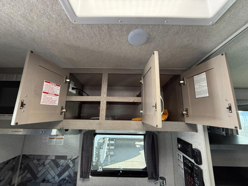 Whatever reason you camp, this truck camper provides convenience, comfort and a dry bath allowing you to skip the public facilities and stay where ever you like! You can sleep in your own bed on a NW TruRest queen mattress up front with one more person and the third person can sleep on the converted dinette that offers 42" x 76" of sleeping area. The slide includes the dinette, 12V refrigerator and a wardrobe giving you more interior floor space inside to enjoy. You will find more storage in several wardrobes, overhead cabinets, and on the shelf above the bed. And there are options to add such as a bunk over the dinette, a 12V LED TV, a 2.5 Onan LP generator, an RV BBQ and more!