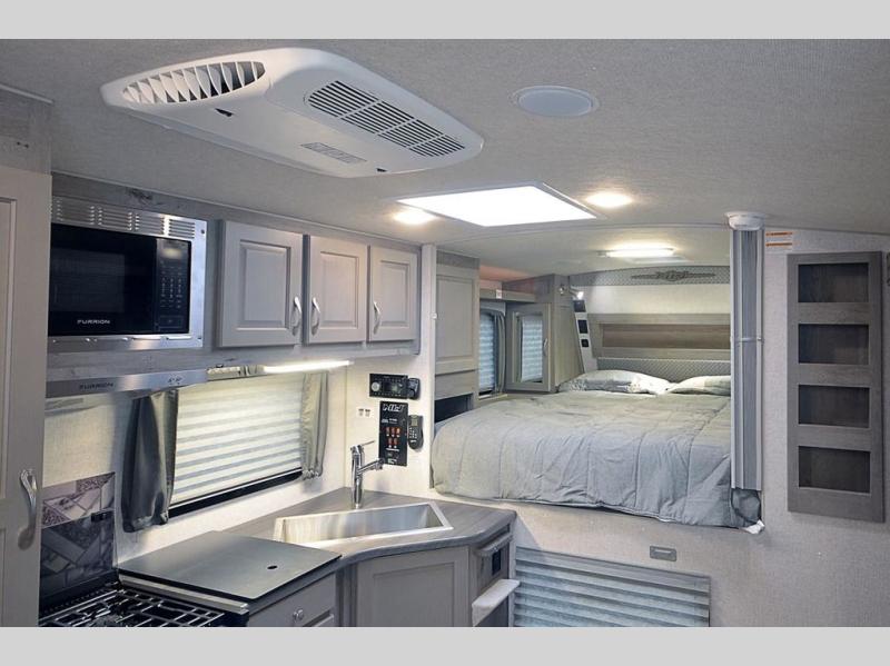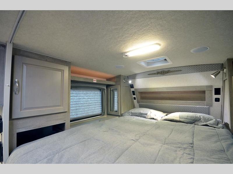 Whatever reason you camp, this truck camper provides convenience, comfort and a dry bath allowing you to skip the public facilities and stay where ever you like! You can sleep in your own bed on a NW TruRest queen mattress up front with one more person and the third person can sleep on the converted dinette that offers 42" x 76" of sleeping area. The slide includes the dinette, 12V refrigerator and a wardrobe giving you more interior floor space inside to enjoy. You will find more storage in several wardrobes, overhead cabinets, and on the shelf above the bed. And there are options to add such as a bunk over the dinette, a 12V LED TV, a 2.5 Onan LP generator, an RV BBQ and more!