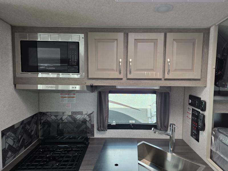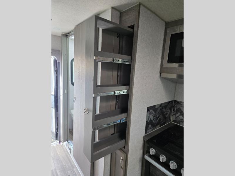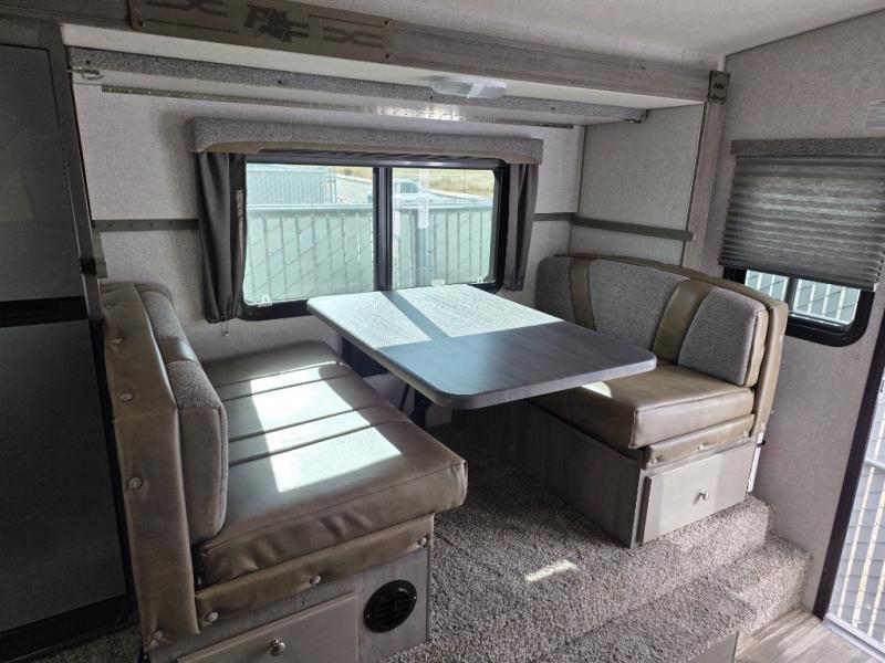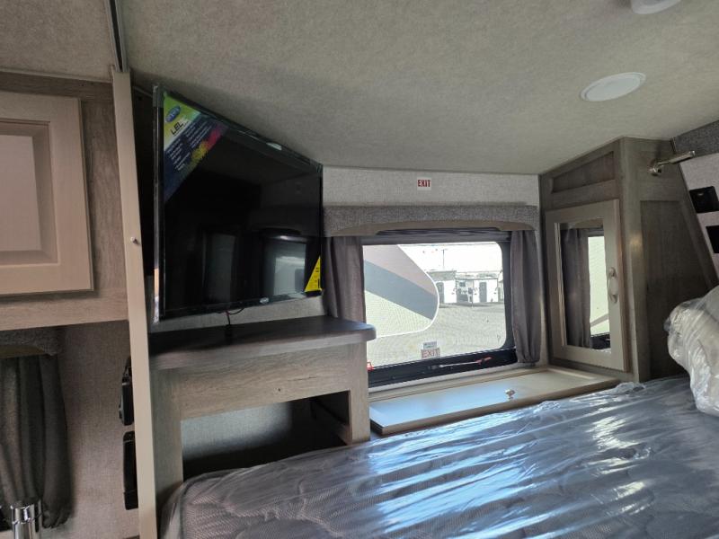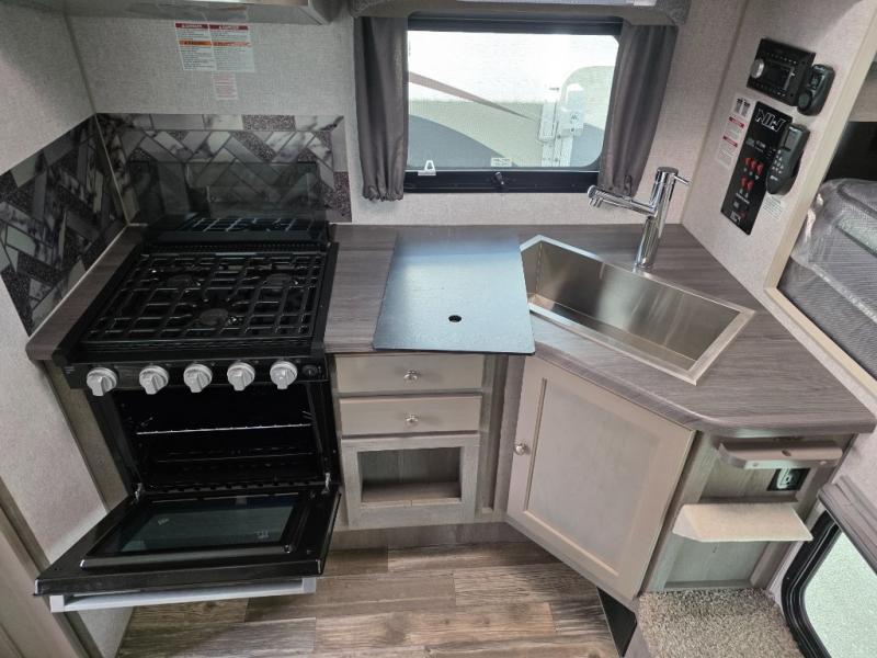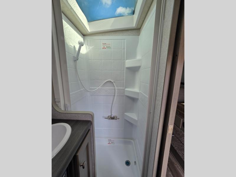 Whatever reason you camp, this truck camper provides convenience, comfort and a dry bath allowing you to skip the public facilities and stay where ever you like! You can sleep in your own bed on a NW TruRest queen mattress up front with one more person and the third person can sleep on the converted dinette that offers 42" x 76" of sleeping area. The slide includes the dinette, 12V refrigerator and a wardrobe giving you more interior floor space inside to enjoy. You will find more storage in several wardrobes, overhead cabinets, and on the shelf above the bed. And there are options to add such as a bunk over the dinette, a 12V LED TV, a 2.5 Onan LP generator, an RV BBQ and more!