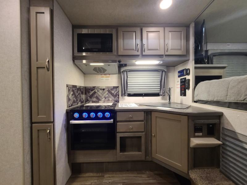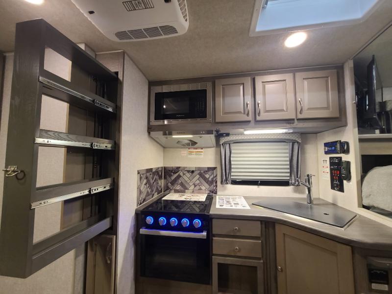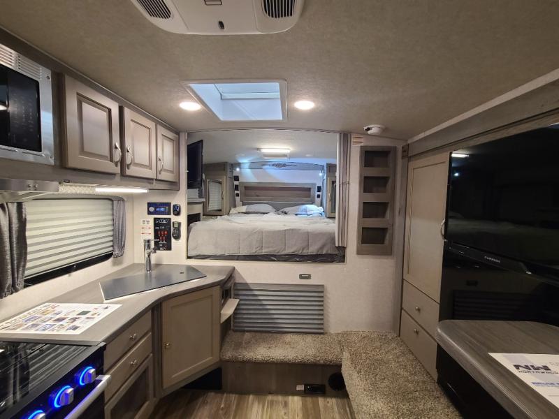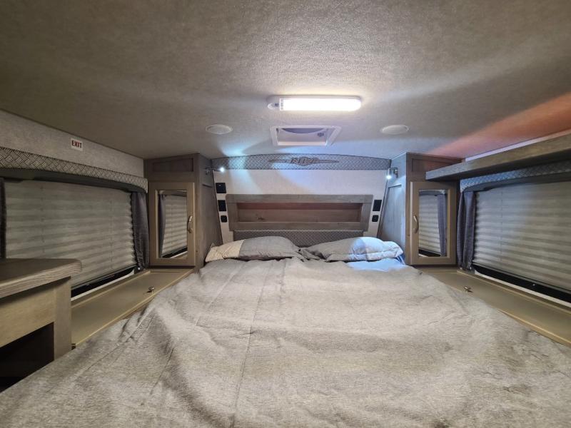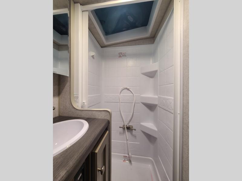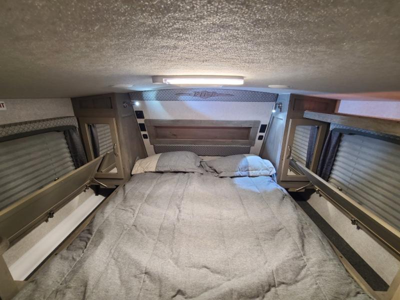 Whatever reason you camp, this truck camper provides convenience, comfort and a dry bath allowing you to skip the public facilities and stay where ever you like! You can sleep in your own bed on a NW TruRest queen mattress up front with one more person and the third person can sleep on the converted dinette that offers 42" x 76" of sleeping area. The slide includes the dinette, 12V refrigerator and a wardrobe giving you more interior floor space inside to enjoy. You will find more storage in several wardrobes, overhead cabinets, and on the shelf above the bed. And there are options to add such as a bunk over the dinette, a 12V LED TV, a 2.5 Onan LP generator, an RV BBQ and more!