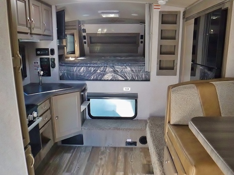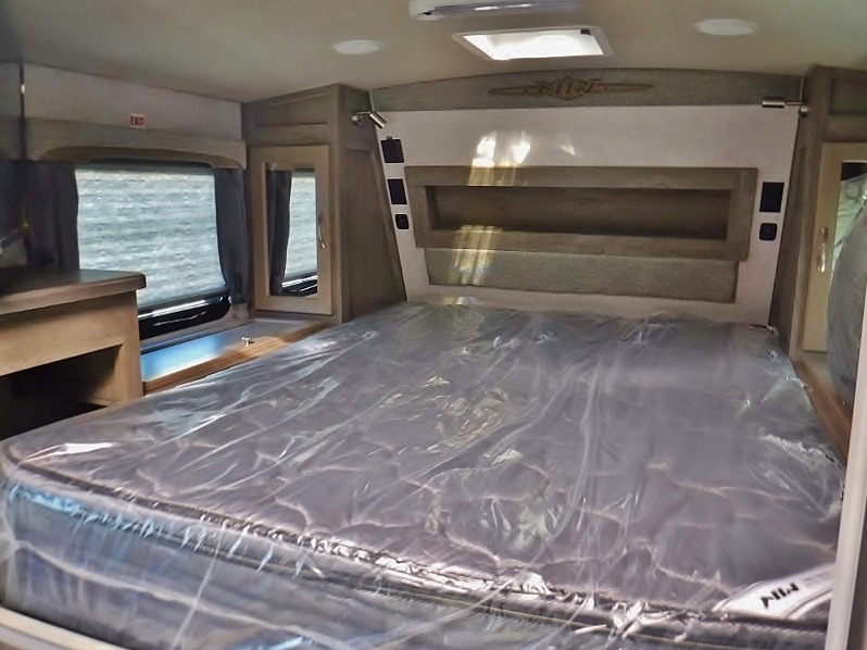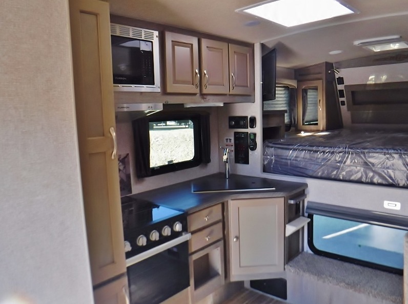 Whatever reason you camp, this truck camper provides convenience, comfort and a dry bath allowing you to skip the public facilities and stay where ever you like! You can sleep in your own bed on a NW TruRest queen mattress up front with one more person and the third person can sleep on the converted dinette that offers 42" x 76" of sleeping area. The slide includes the dinette, 12V refrigerator and a wardrobe giving you more interior floor space inside to enjoy. You will find more storage in several wardrobes, overhead cabinets, and on the shelf above the bed. And there are options to add such as a bunk over the dinette, a 12V LED TV, a 2.5 Onan LP generator, an RV BBQ and more!