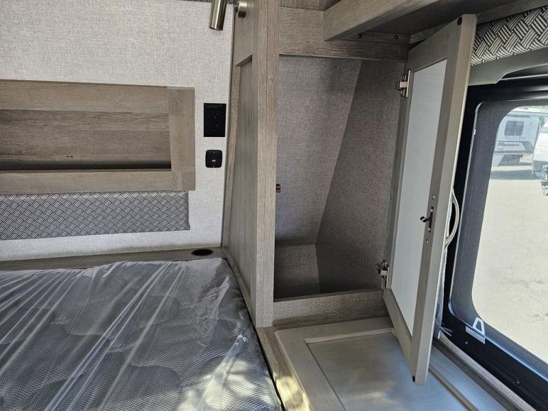 Whether you camp, hunt or even fish once you have arrived at your destination, this truck camper provides plenty of comforts and conveniences so you can choose your fun. The rear entry places you inside to find a wet bath along one side and a booth dinette slide with fridge on the other. You can dine and even sleep here once converted into a 38" x 68" sleeping area. And there is an optional bunk above. The cook will love the large stainless steel sink, the pantry and the three burner cooktop when making meals inside. The 58" x 80" NW TruRest queen mattress with bedspread will allow you to get a good night's rest. And you will find plenty of storage in the three wardrobes and your dirty clothes can go into one of the two hampers.