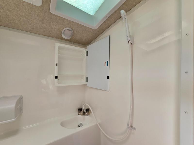 With any Arctic Fox truck camper by Northwood, there is a fully welded thick wall aluminum tube frame with solid core anchor blocking that gives substantial strength at the main connection points, and a heavy duty basement floor frame with joists that support the heated holding tanks under the basement. These 4 Season all weather campers allow you to camp where ever and whenever you decide to set up camp. The electric jacks with 6-function remote makes setting up easy, and the exterior shower allows you to keep the dirt outside. Inside you will find a cathedral arched ceiling for a spacious interior, solid wood cabinetry, a Dayliter kitchen skylight with shade to choose when you want more natural lighting inside, a porcelain, foot-pedal toilet and bath skylight, and roller bearing drawer guides.