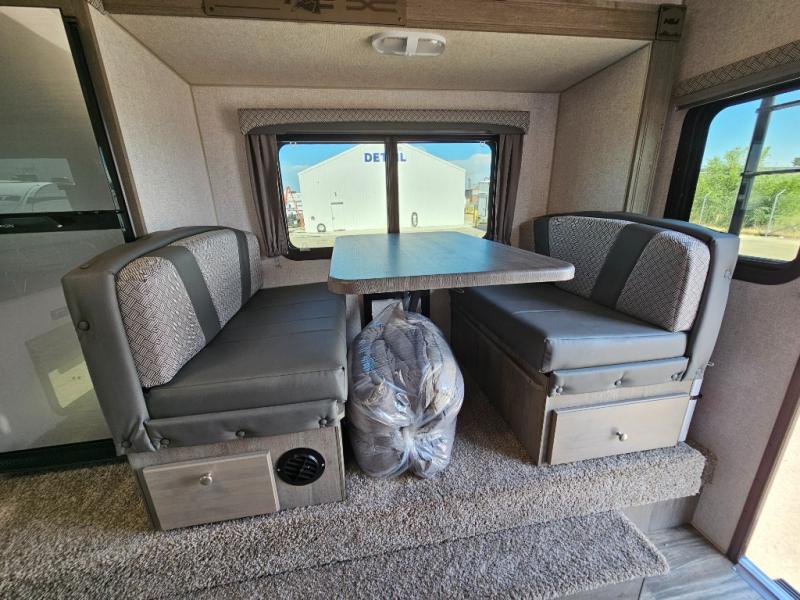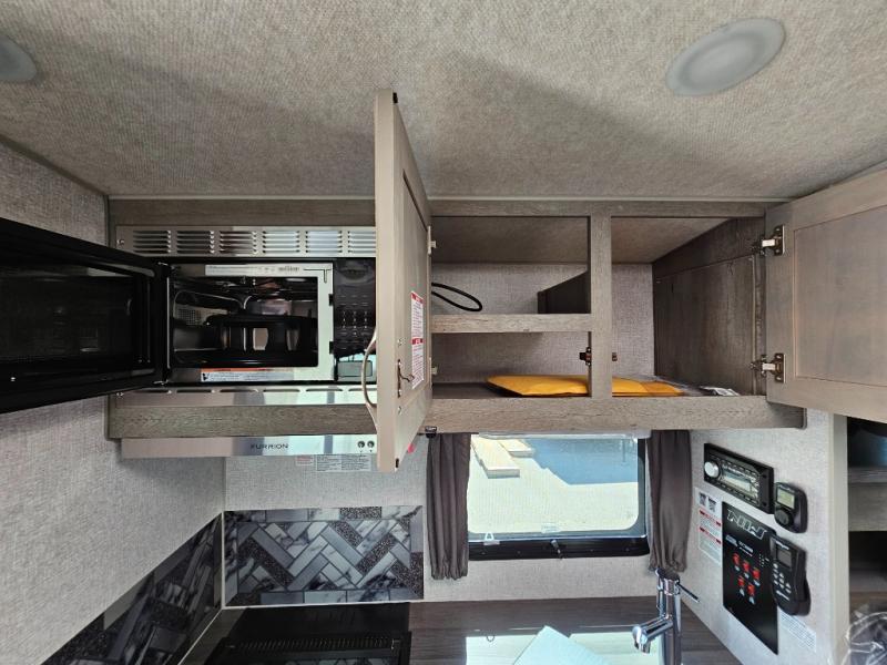Whether you camp, hunt or even fish once you have arrived at your destination, this truck camper provides plenty of comforts and conveniences so you can choose your fun. The rear entry places you inside to find a wet bath along one side and a booth dinette slide with fridge on the other. You can dine and even sleep here once converted into a 38" x 68" sleeping area. And there is an optional bunk above. The cook will love the large stainless steel sink, the pantry and the three burner cooktop when making meals inside. The 58" x 80" NW TruRest queen mattress with bedspread will allow you to get a good night's rest. And you will find plenty of storage in the three wardrobes and your dirty clothes can go into one of the two hampers.