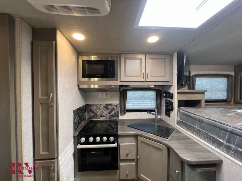 Whether you camp, hunt or even fish once you have arrived at your destination, this truck camper provides plenty of comforts and conveniences so you can choose your fun. The rear entry places you inside to find a wet bath along one side and a booth dinette slide with fridge on the other. You can dine and even sleep here once converted into a 38" x 68" sleeping area. And there is an optional bunk above. The cook will love the large stainless steel sink, the pantry and the three burner cooktop when making meals inside. The 58" x 80" NW TruRest queen mattress with bedspread will allow you to get a good night's rest. And you will find plenty of storage in the three wardrobes and your dirty clothes can go into one of the two hampers.
