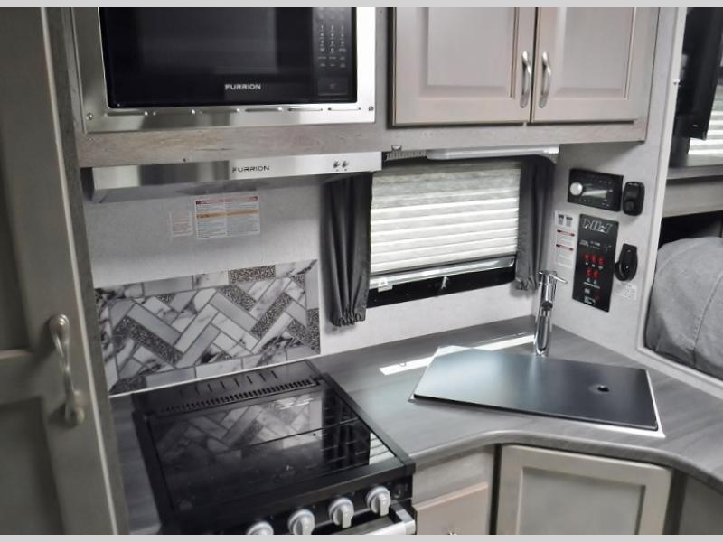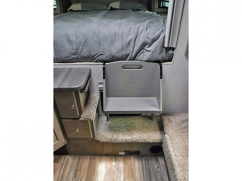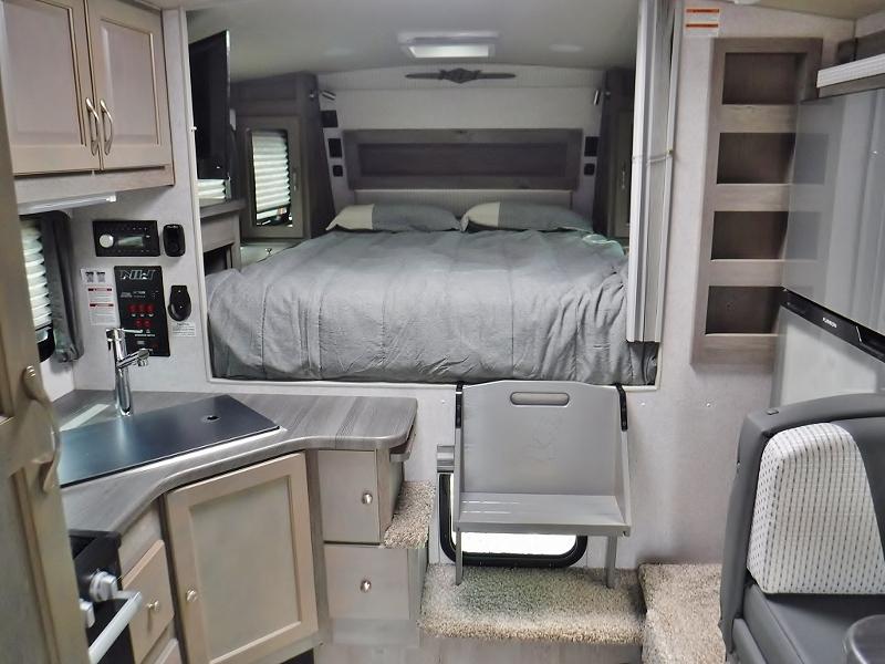 Whether you camp, hunt or even fish once you have arrived at your destination, this truck camper provides plenty of comforts and conveniences so you can choose your fun. The rear entry places you inside to find a wet bath along one side and a booth dinette slide with fridge on the other. You can dine and even sleep here once converted into a 38" x 68" sleeping area. And there is an optional bunk above. The cook will love the large stainless steel sink, the pantry and the three burner cooktop when making meals inside. The 58" x 80" NW TruRest queen mattress with bedspread will allow you to get a good night's rest. And you will find plenty of storage in the three wardrobes and your dirty clothes can go into one of the two hampers.