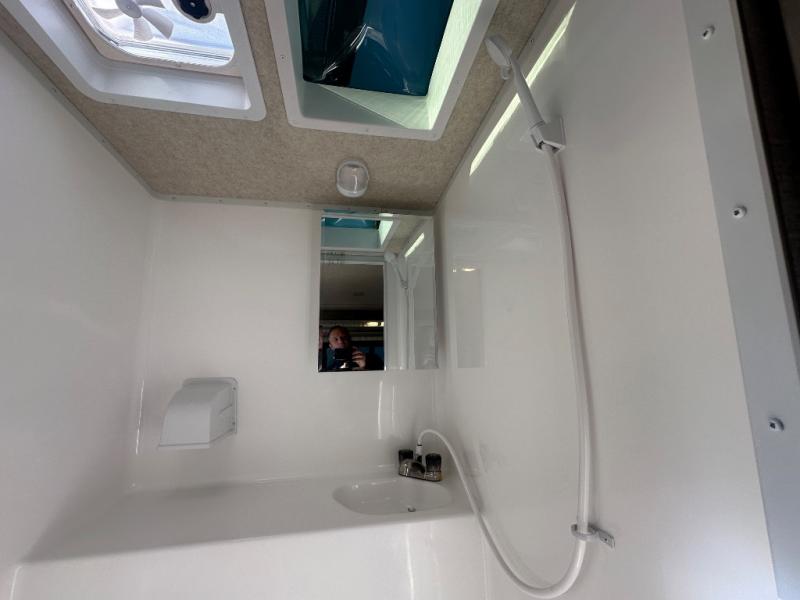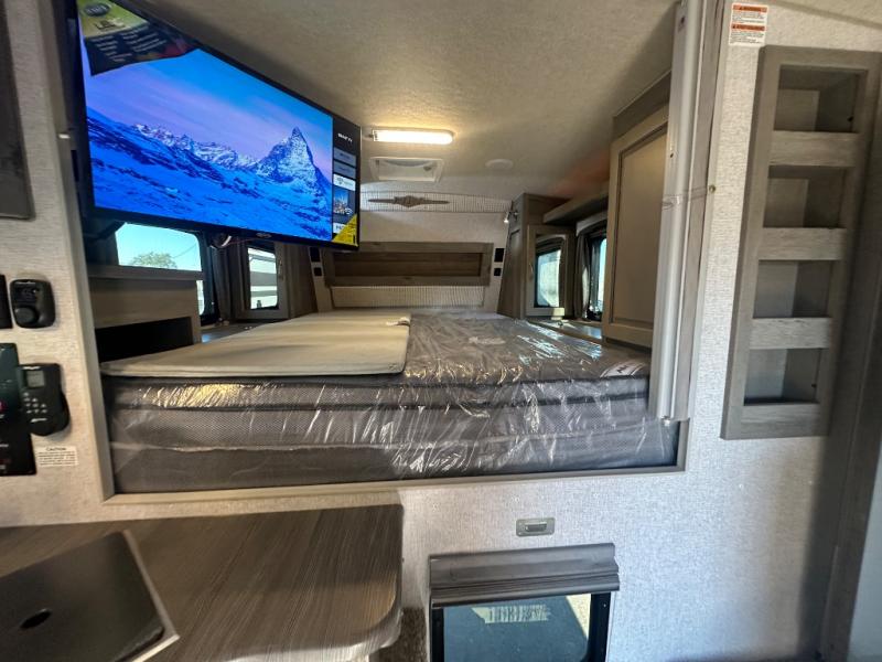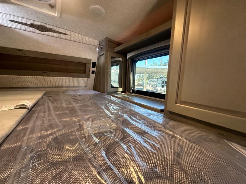 Whether you camp, hunt or even fish once you have arrived at your destination, this truck camper provides plenty of comforts and conveniences so you can choose your fun. The rear entry places you inside to find a wet bath along one side and a booth dinette slide with fridge on the other. You can dine and even sleep here once converted into a 38" x 68" sleeping area. And there is an optional bunk above. The cook will love the large stainless steel sink, the pantry and the three burner cooktop when making meals inside. The 58" x 80" NW TruRest queen mattress with bedspread will allow you to get a good night's rest. And you will find plenty of storage in the three wardrobes and your dirty clothes can go into one of the two hampers.