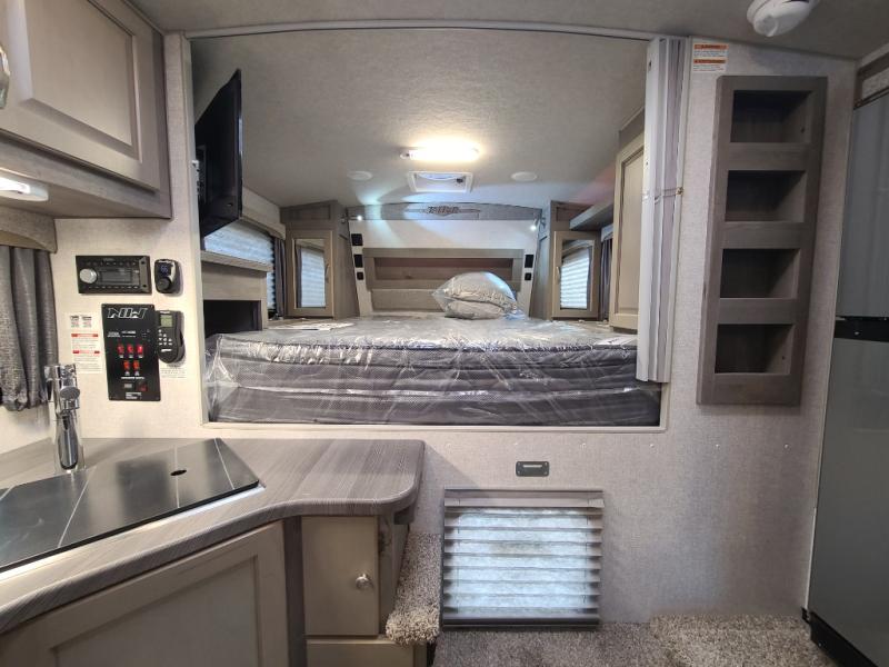 Whether you camp, hunt or even fish once you have arrived at your destination, this truck camper provides plenty of comforts and conveniences so you can choose your fun. The rear entry places you inside to find a wet bath along one side and a booth dinette slide with fridge on the other. You can dine and even sleep here once converted into a 38" x 68" sleeping area. And there is an optional bunk above. The cook will love the large stainless steel sink, the pantry and the three burner cooktop when making meals inside. The 58" x 80" NW TruRest queen mattress with bedspread will allow you to get a good night's rest. And you will find plenty of storage in the three wardrobes and your dirty clothes can go into one of the two hampers.