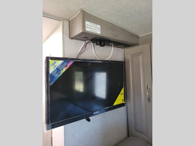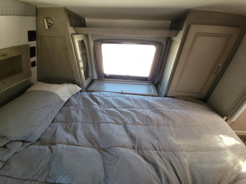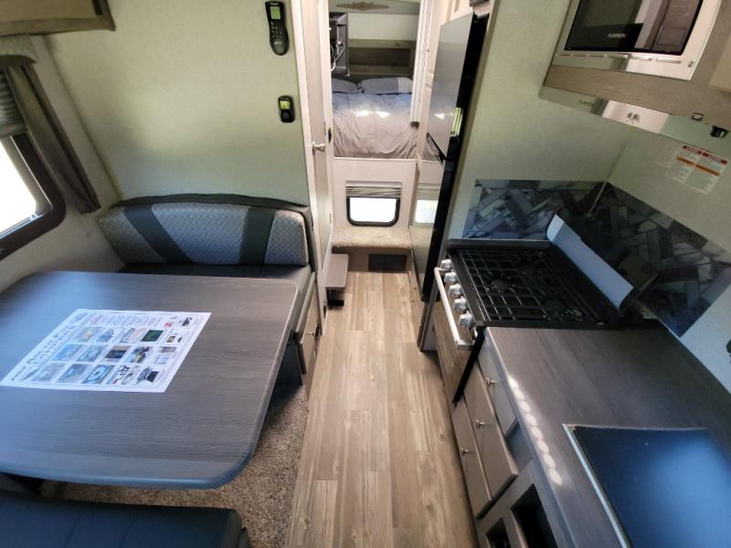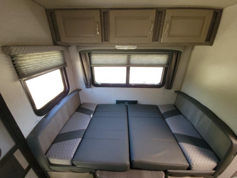 Looking for an easy to setup camper that offers sleeping space for three to four? Once at your destination, there is no slide to worry about, just get dressed and start exploring to return to inside comforts or relax outdoors under the rear electric awning with LED lights before making dinner. The cook will love the three burner cooktop and microwave to make meals, plus an 8 cu. ft. 12V refrigerator for food storage. You can take turns getting cleaned up in the wet bath which is centrally located for convenience. The front NW TruRest queen mattress gives you sleeping for two with plenty of storage for clothing and two hampers for dirty clothes, and the dinette converts to a 38" x 68" sleeping area.