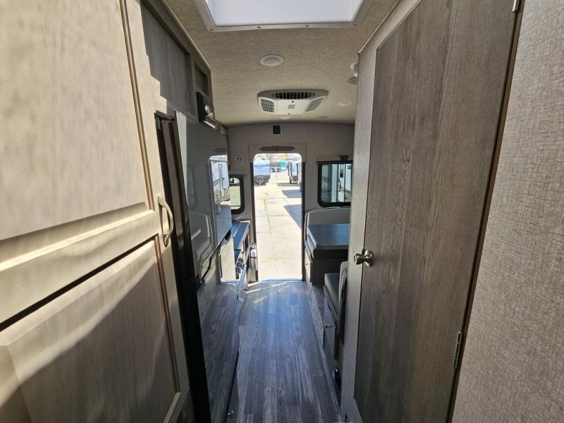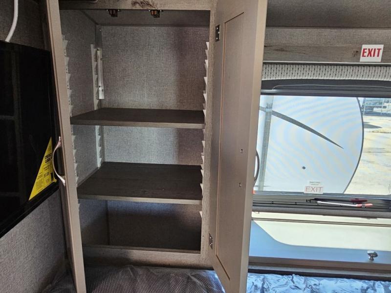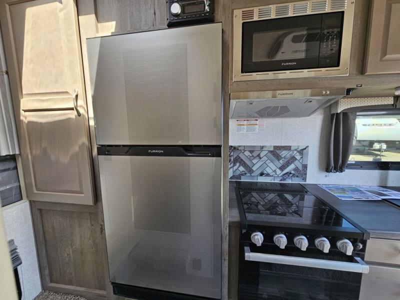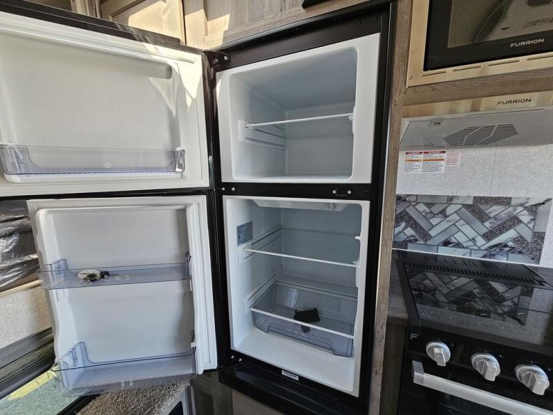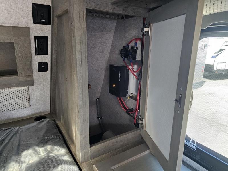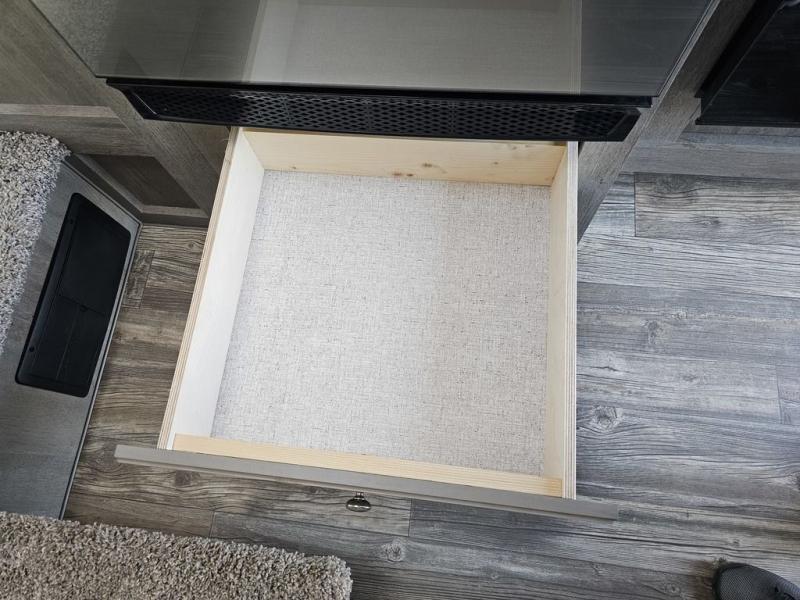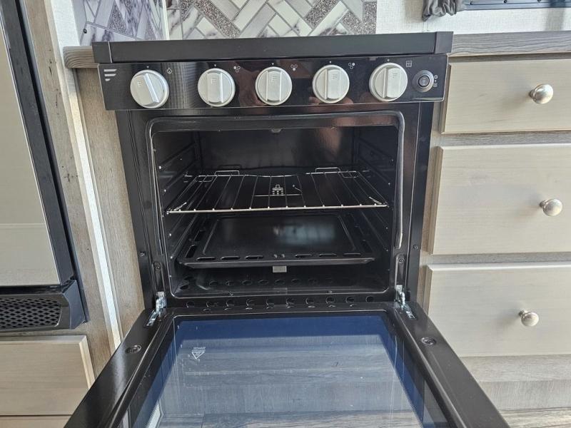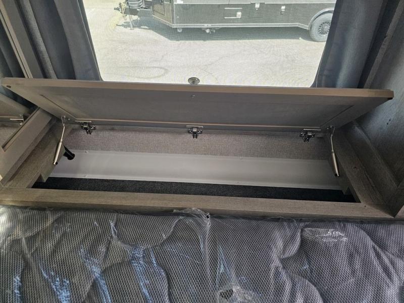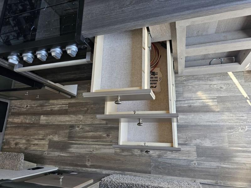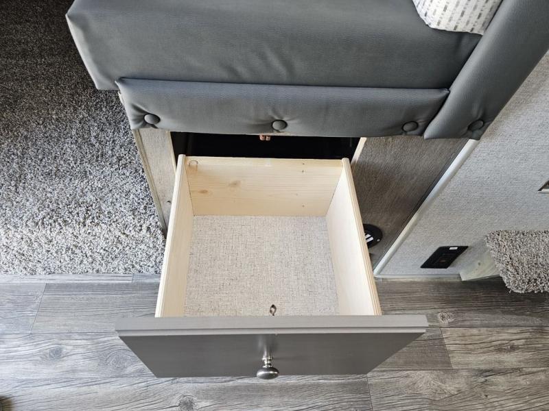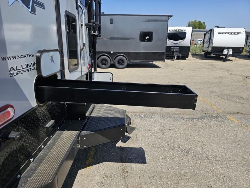 Looking for an easy to setup camper that offers sleeping space for three to four? Once at your destination, there is no slide to worry about, just get dressed and start exploring to return to inside comforts or relax outdoors under the rear electric awning with LED lights before making dinner. The cook will love the three burner cooktop and microwave to make meals, plus an 8 cu. ft. 12V refrigerator for food storage. You can take turns getting cleaned up in the wet bath which is centrally located for convenience. The front NW TruRest queen mattress gives you sleeping for two with plenty of storage for clothing and two hampers for dirty clothes, and the dinette converts to a 38" x 68" sleeping area.