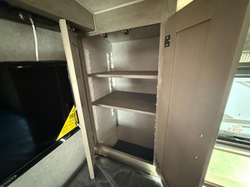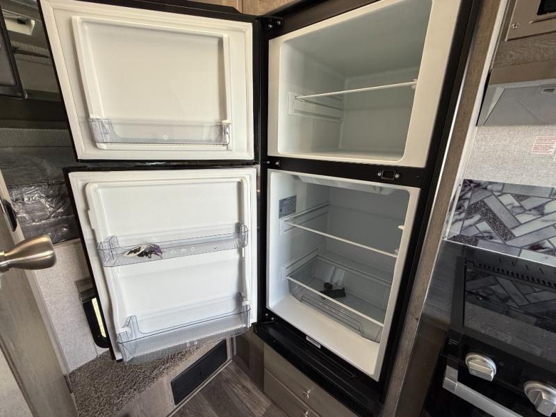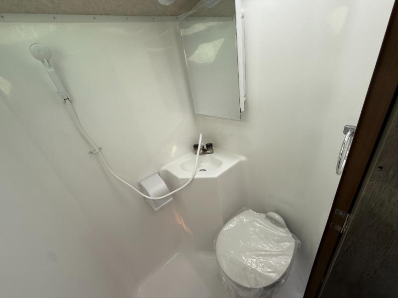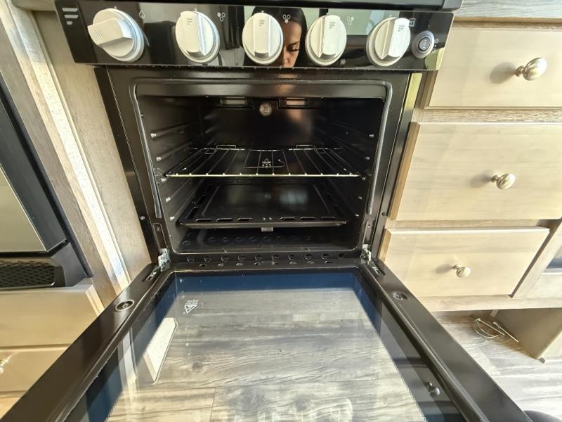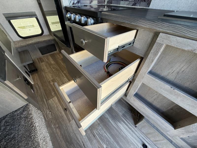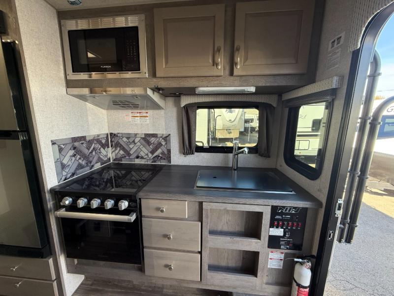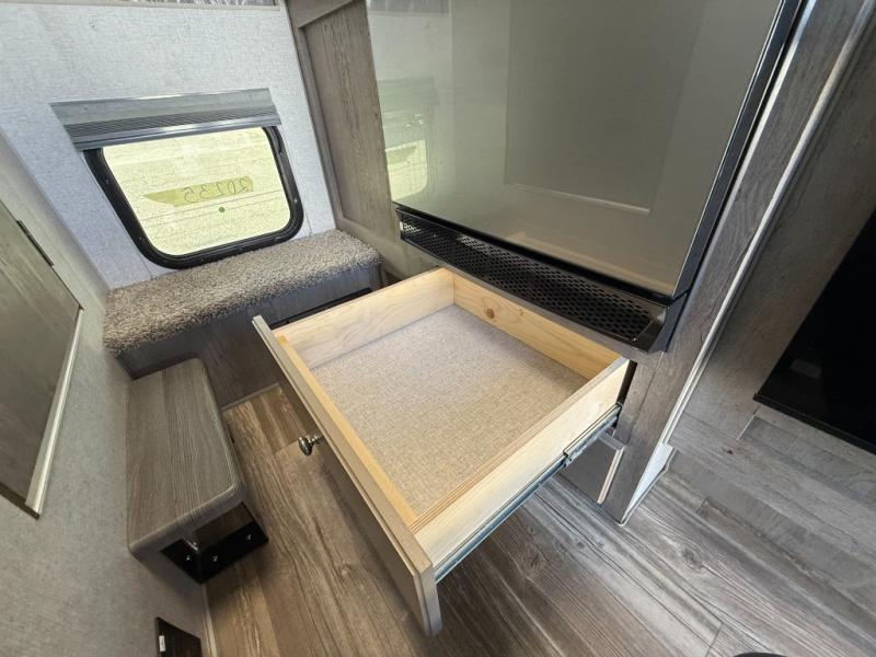 Looking for an easy to setup camper that offers sleeping space for three to four? Once at your destination, there is no slide to worry about, just get dressed and start exploring to return to inside comforts or relax outdoors under the rear electric awning with LED lights before making dinner. The cook will love the three burner cooktop and microwave to make meals, plus an 8 cu. ft. 12V refrigerator for food storage. You can take turns getting cleaned up in the wet bath which is centrally located for convenience. The front NW TruRest queen mattress gives you sleeping for two with plenty of storage for clothing and two hampers for dirty clothes, and the dinette converts to a 38" x 68" sleeping area.