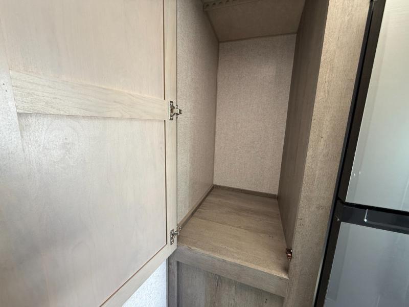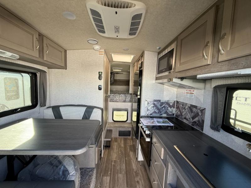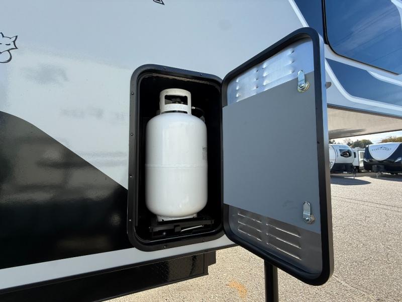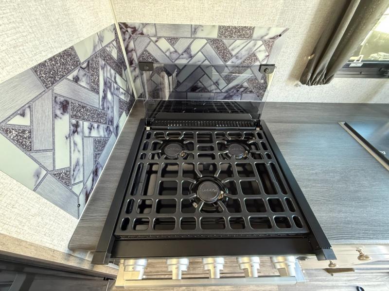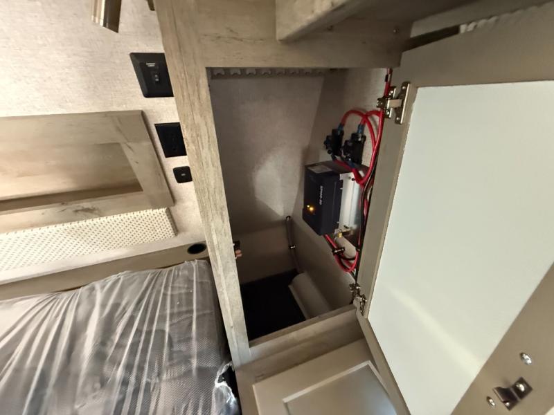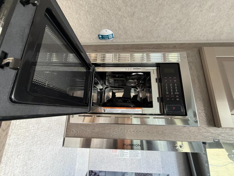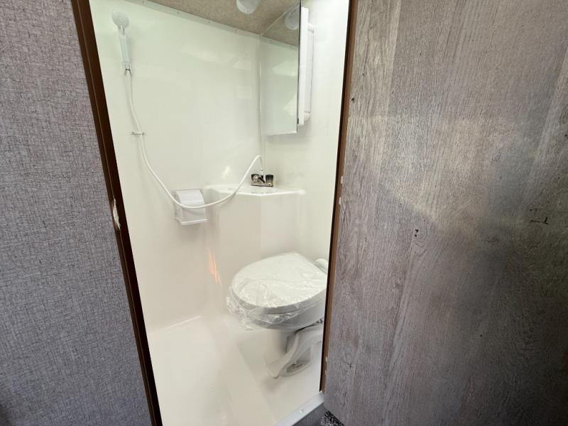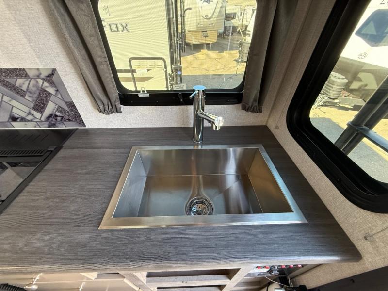 Looking for an easy to setup camper that offers sleeping space for three to four? Once at your destination, there is no slide to worry about, just get dressed and start exploring to return to inside comforts or relax outdoors under the rear electric awning with LED lights before making dinner. The cook will love the three burner cooktop and microwave to make meals, plus an 8 cu. ft. 12V refrigerator for food storage. You can take turns getting cleaned up in the wet bath which is centrally located for convenience. The front NW TruRest queen mattress gives you sleeping for two with plenty of storage for clothing and two hampers for dirty clothes, and the dinette converts to a 38" x 68" sleeping area.