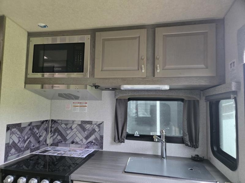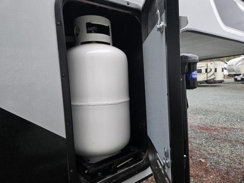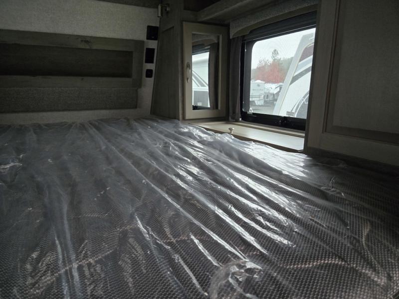 Looking for an easy to setup camper that offers sleeping space for three to four? Once at your destination, there is no slide to worry about, just get dressed and start exploring to return to inside comforts or relax outdoors under the rear electric awning with LED lights before making dinner. The cook will love the three burner cooktop and microwave to make meals, plus an 8 cu. ft. 12V refrigerator for food storage. You can take turns getting cleaned up in the wet bath which is centrally located for convenience. The front NW TruRest queen mattress gives you sleeping for two with plenty of storage for clothing and two hampers for dirty clothes, and the dinette converts to a 38" x 68" sleeping area.