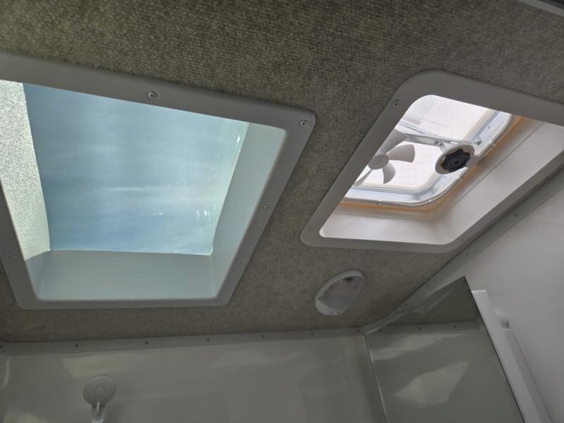 With any Arctic Fox truck camper by Northwood, there is a fully welded thick wall aluminum tube frame with solid core anchor blocking that gives substantial strength at the main connection points, and a heavy duty basement floor frame with joists that support the heated holding tanks under the basement. These 4 Season all weather campers allow you to camp where ever and whenever you decide to set up camp. The electric jacks with 6-function remote makes setting up easy, and the exterior shower allows you to keep the dirt outside. Inside you will find a cathedral arched ceiling for a spacious interior, solid wood cabinetry, a Dayliter kitchen skylight with shade to choose when you want more natural lighting inside, a porcelain, foot-pedal toilet and bath skylight, and roller bearing drawer guides.
