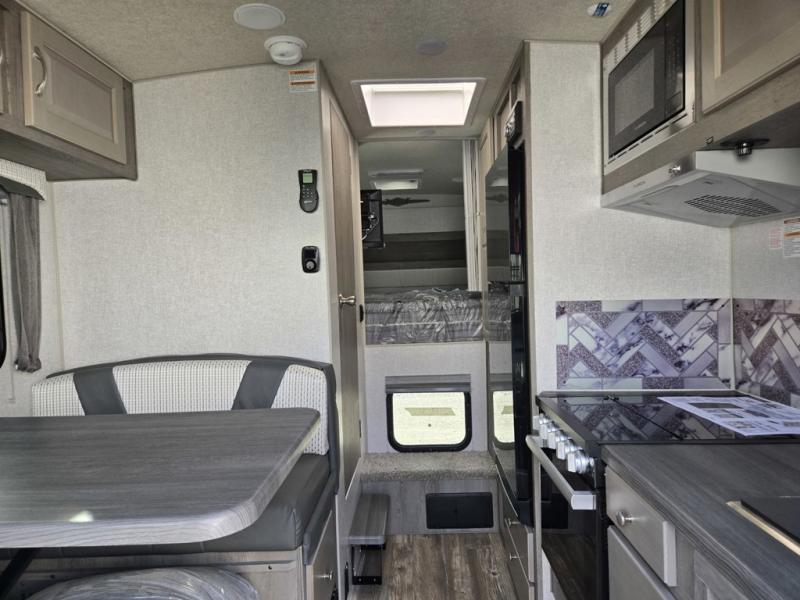 Looking for an easy to setup camper that offers sleeping space for three to four? Once at your destination, there is no slide to worry about, just get dressed and start exploring to return to inside comforts or relax outdoors under the rear electric awning with LED lights before making dinner. The cook will love the three burner cooktop and microwave to make meals, plus an 8 cu. ft. 12V refrigerator for food storage. You can take turns getting cleaned up in the wet bath which is centrally located for convenience. The front NW TruRest queen mattress gives you sleeping for two with plenty of storage for clothing and two hampers for dirty clothes, and the dinette converts to a 38" x 68" sleeping area.