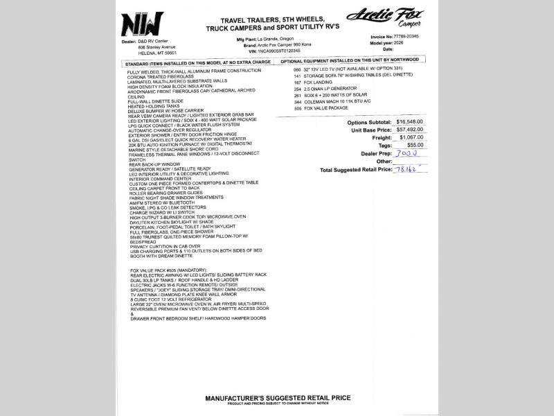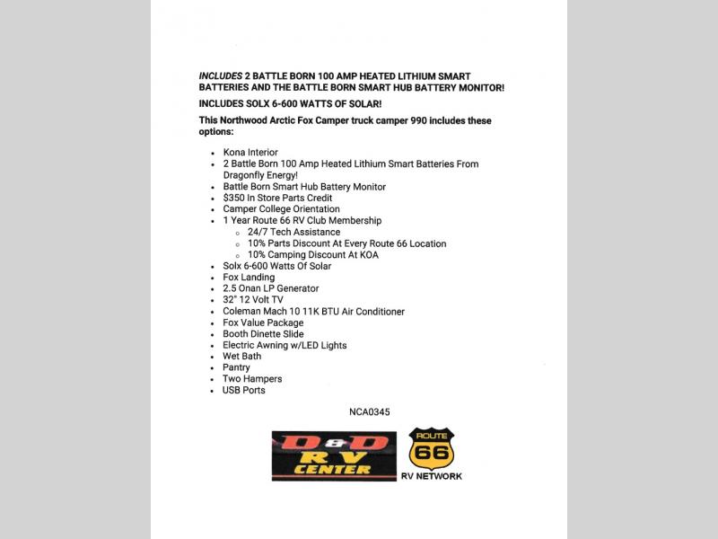 This Northwood Arctic Fox Camper truck camper 990 includes these options: