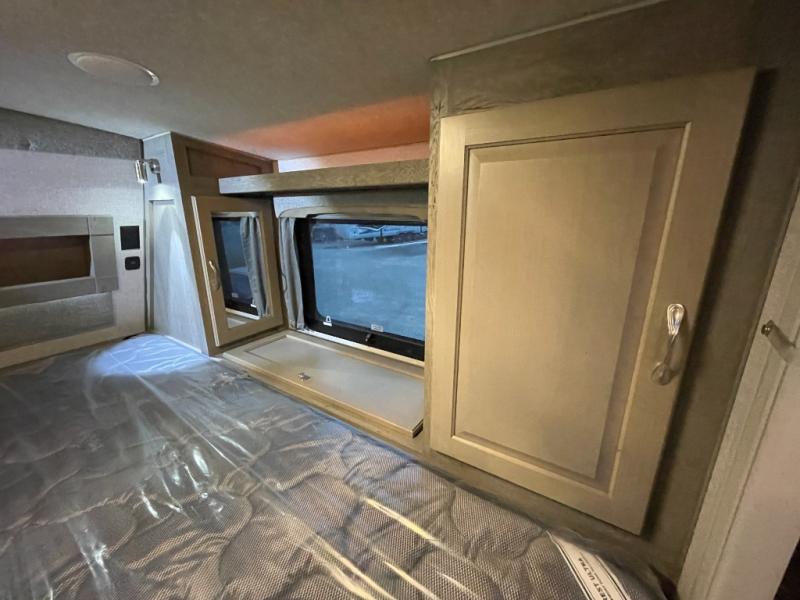 Camping with your own truck and maybe towing a fishing boat sounds pretty good, right? You can easily setup this truck camper and head out with your boat to return to comfortable accommodations as you relax at the campgrounds. You can sit at the dinette and you can convert this furniture into a 42" x 76" sleeping area. There is an optional bunk above if you might need more sleeping space for family and friends. Be sure to cook up your catch for the day using the three burner cooktop and microwave oven. The 58" x 80" NW TruRest queen mattress with a bedspread up front will allow you to get a good night's rest, and there is plenty of storage for your clothing and others' belongings with three wardrobes. And don't forget to put your dirty clothes in the hampers.