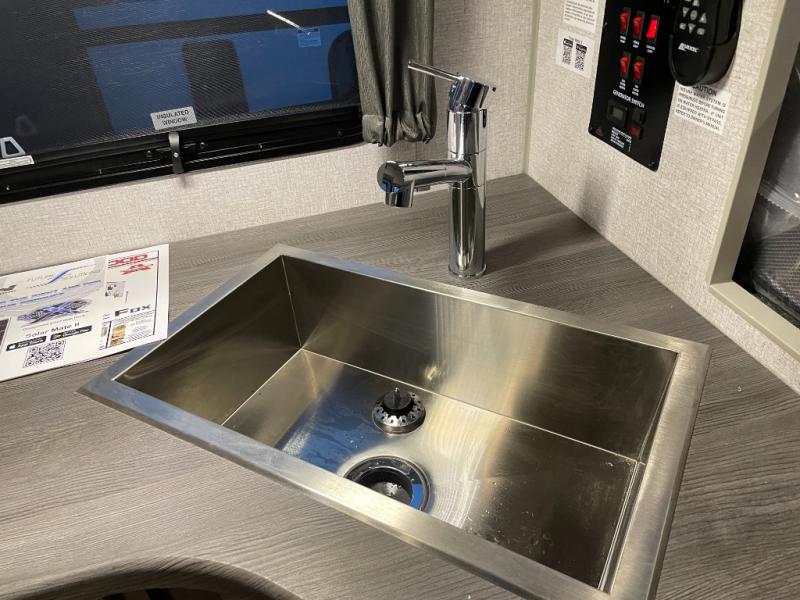 With any Arctic Fox truck camper by Northwood, there is a fully welded thick wall aluminum tube frame with solid core anchor blocking that gives substantial strength at the main connection points, and a heavy duty basement floor frame with joists that support the heated holding tanks under the basement. These 4 Season all weather campers allow you to camp where ever and whenever you decide to set up camp. The electric jacks with 6-function remote makes setting up easy, and the exterior shower allows you to keep the dirt outside. Inside you will find a cathedral arched ceiling for a spacious interior, solid wood cabinetry, a Dayliter kitchen skylight with shade to choose when you want more natural lighting inside, a porcelain, foot-pedal toilet and bath skylight, and roller bearing drawer guides.